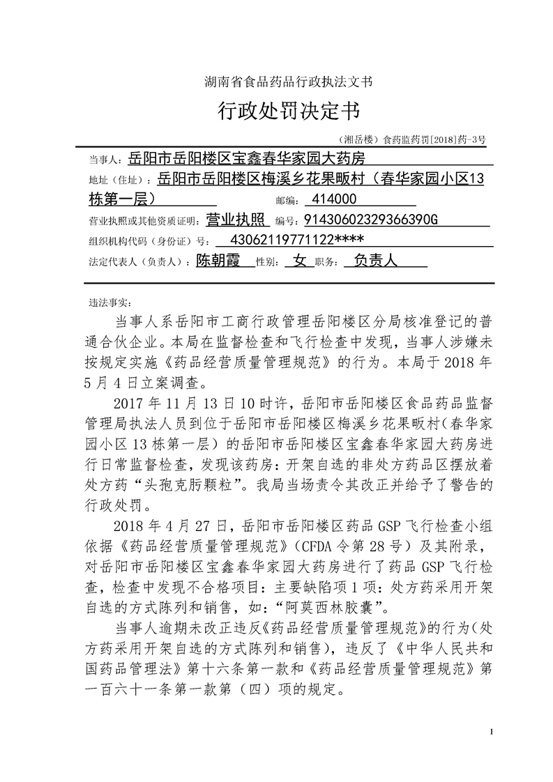 岳阳楼区食品药品监督管理局行政处罚文书公示(2018年7月第十二期)