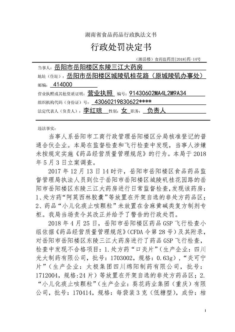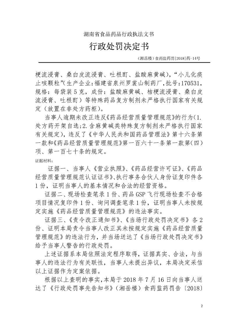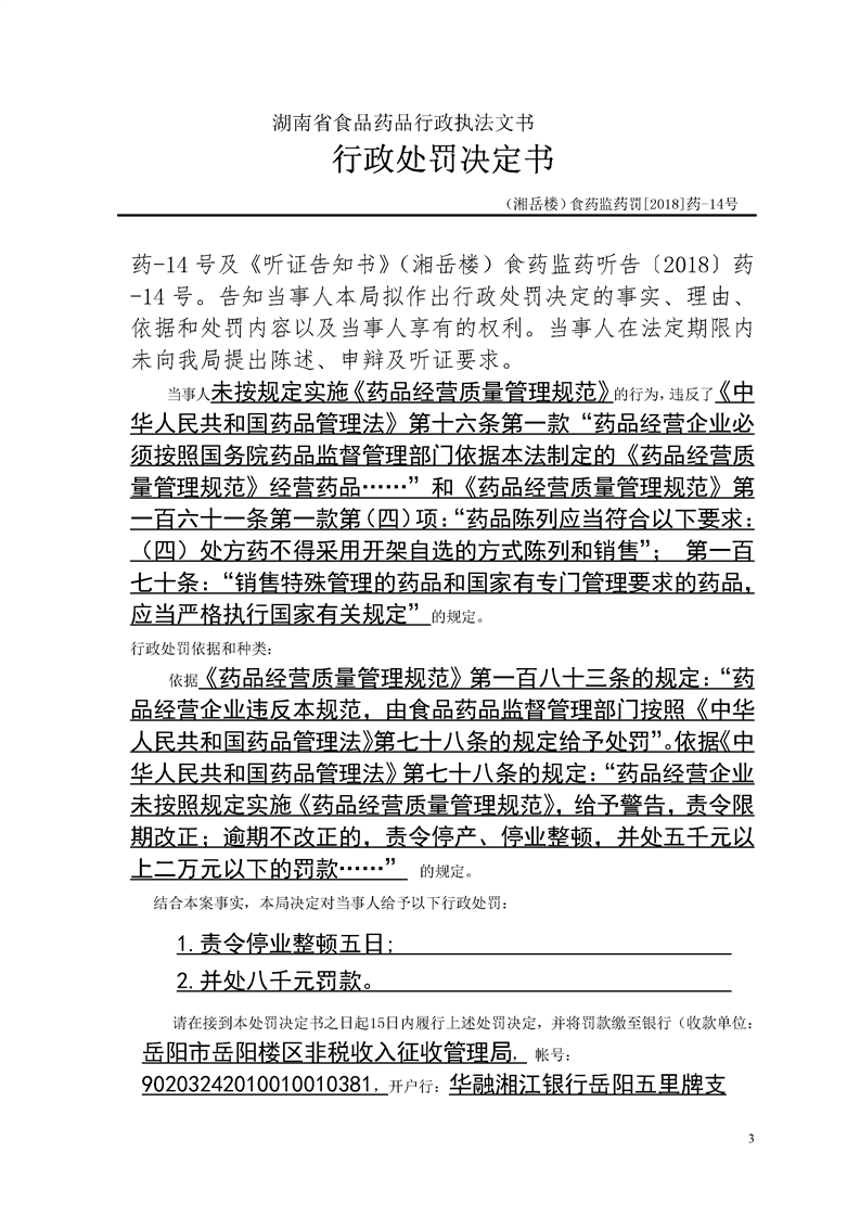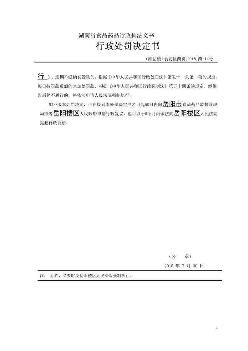 岳阳楼区食品药品监督管理局行政处罚文书公示(2018年7月第十三期)