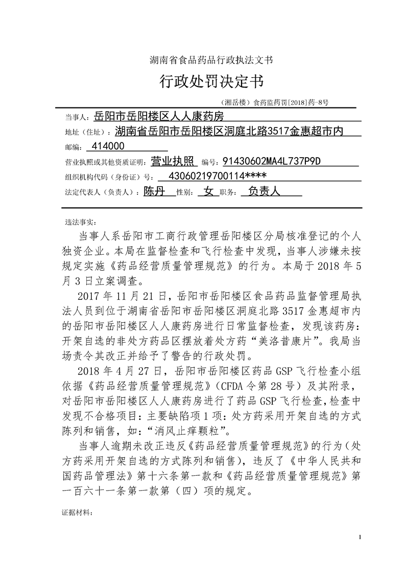 岳阳楼区食品药品监督管理局行政处罚文书公示(2018年7月第十八期)