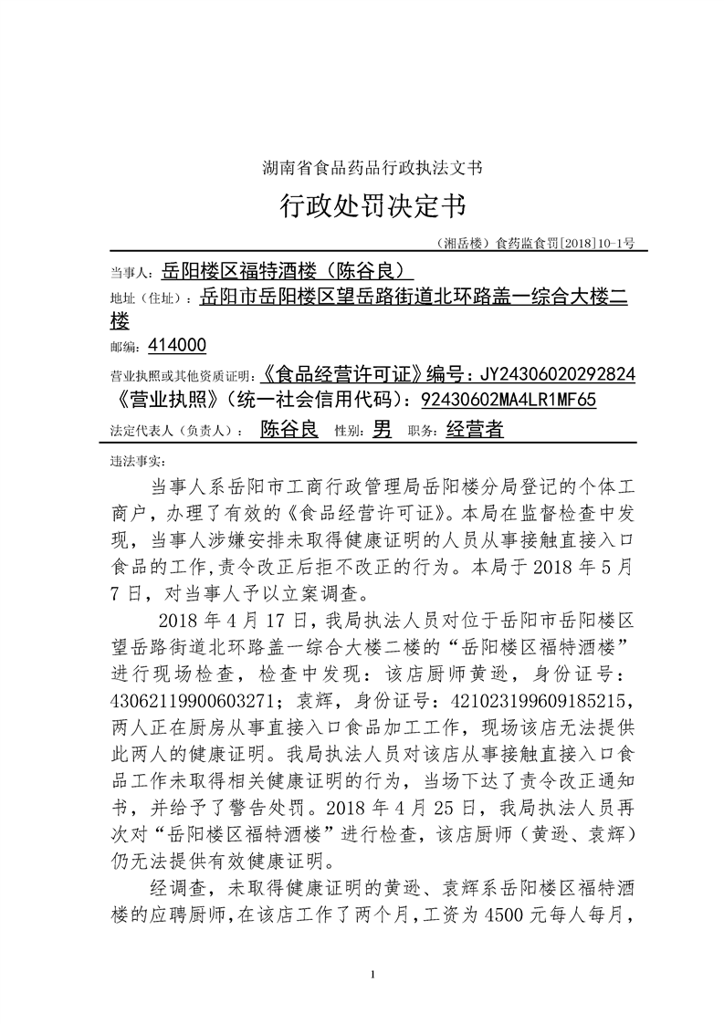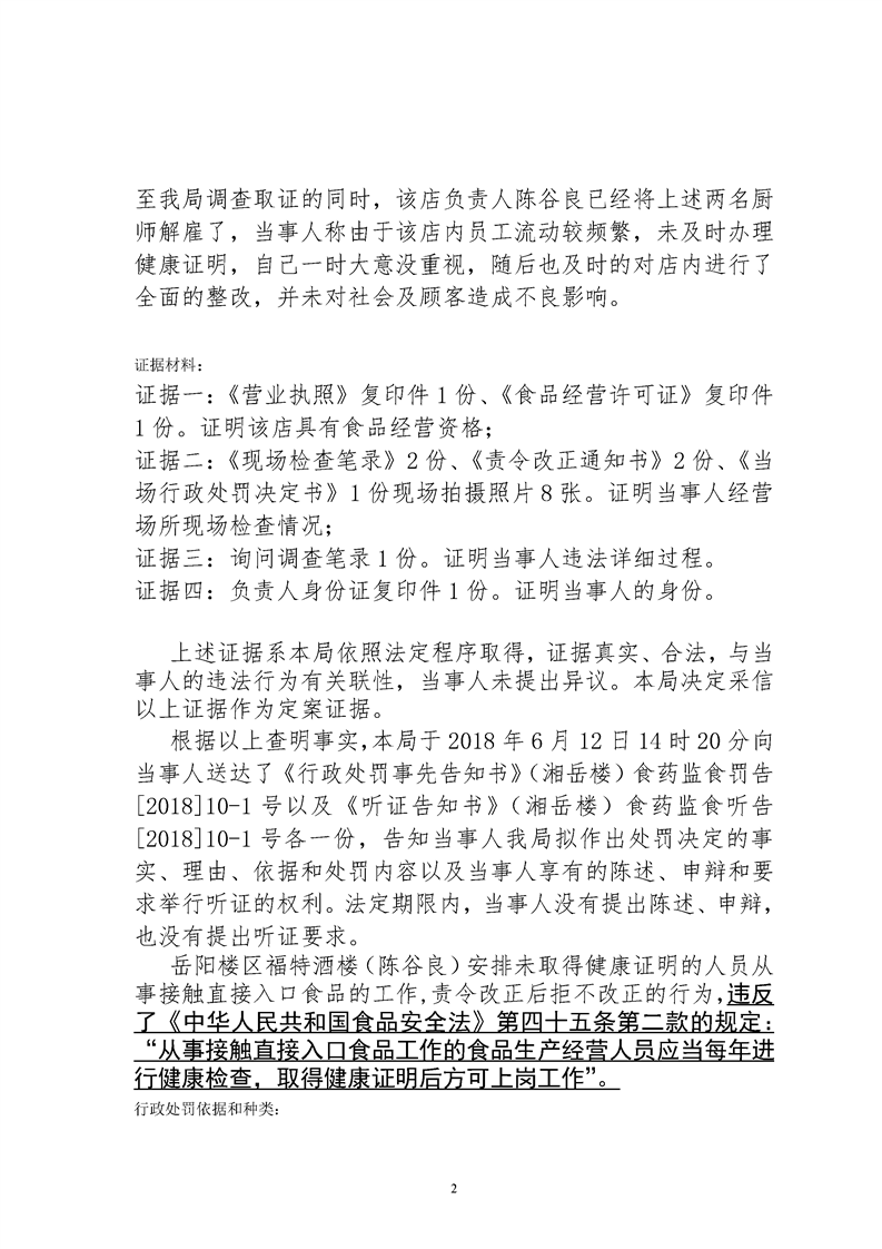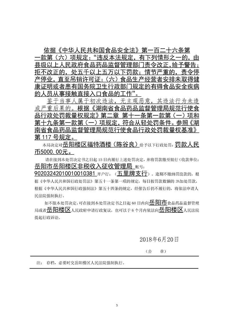 岳阳楼区食品药品监督管理局行政处罚文书公示(2018年8月第三期)
