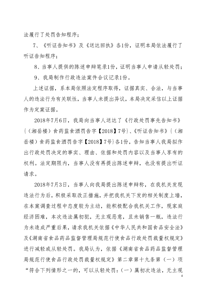 岳阳楼区食品药品监督管理局行政处罚文书公示(2018年8月第五期)