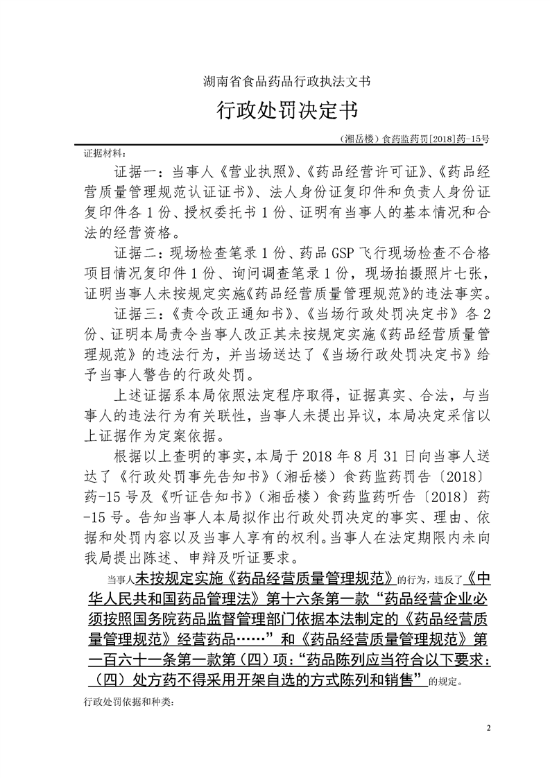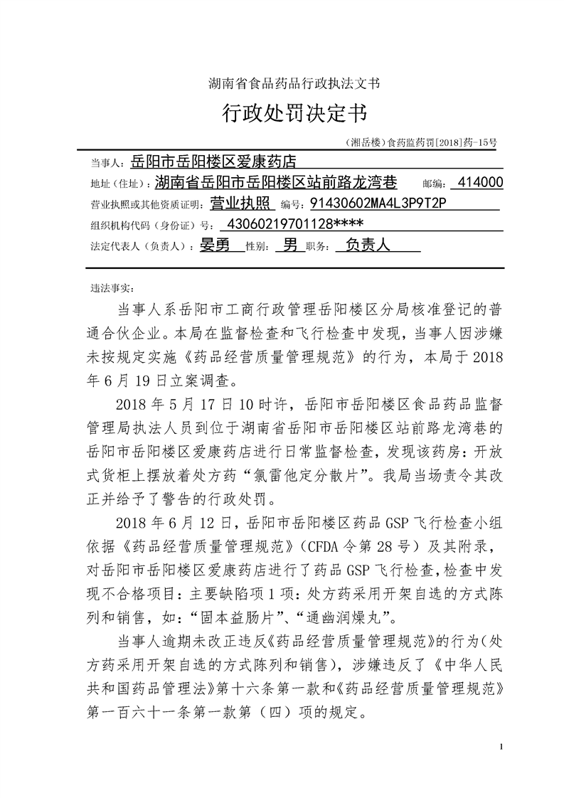 岳阳楼区食品药品监督管理局行政处罚文书公示(2018年9月第一期)