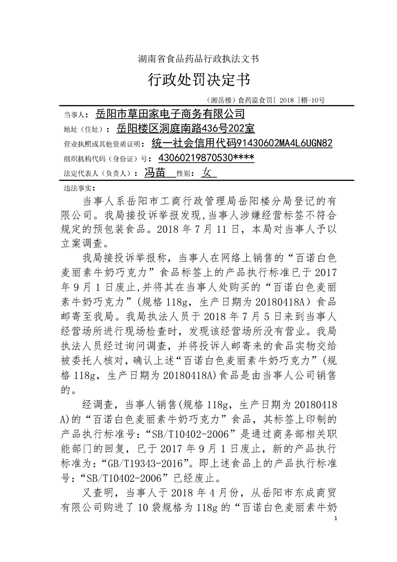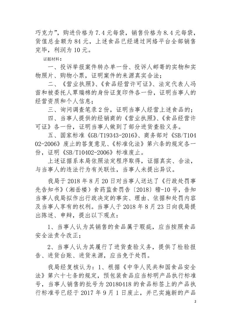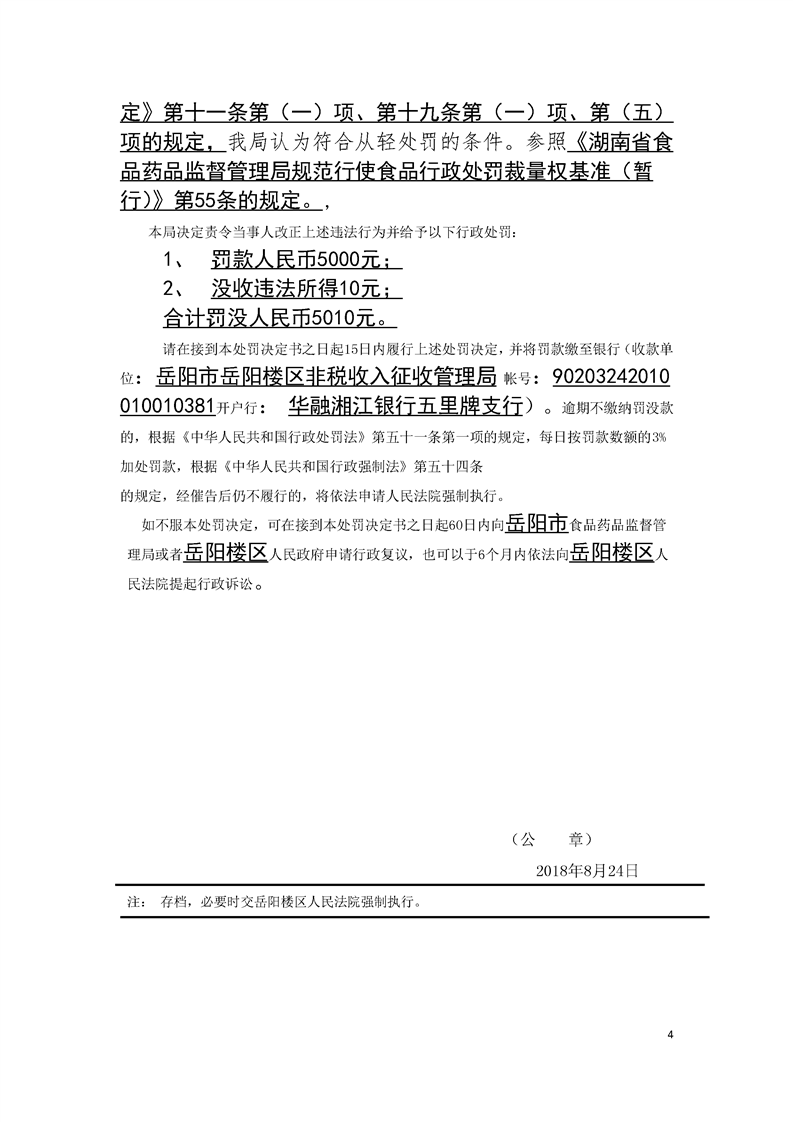 岳阳楼区食品药品监督管理局行政处罚文书公示(2018年9月第三期)