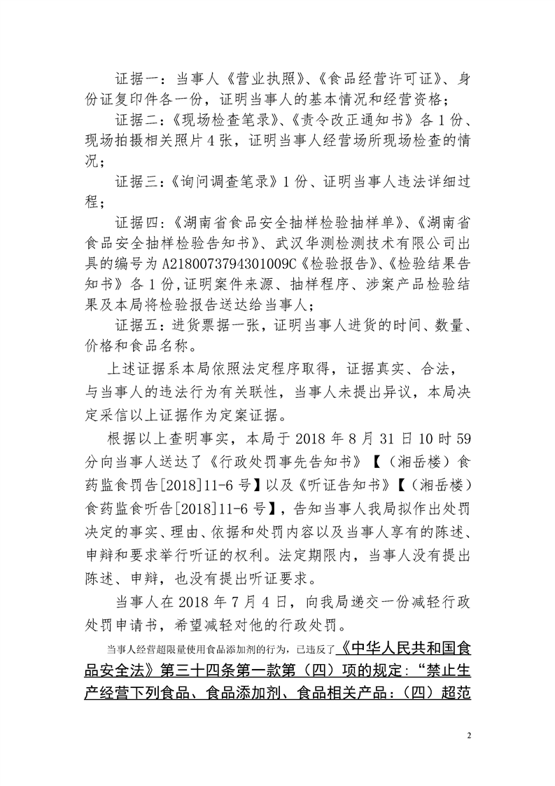 岳阳楼区食品药品监督管理局行政处罚文书公示(2018年9月第四期)