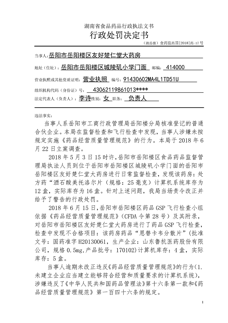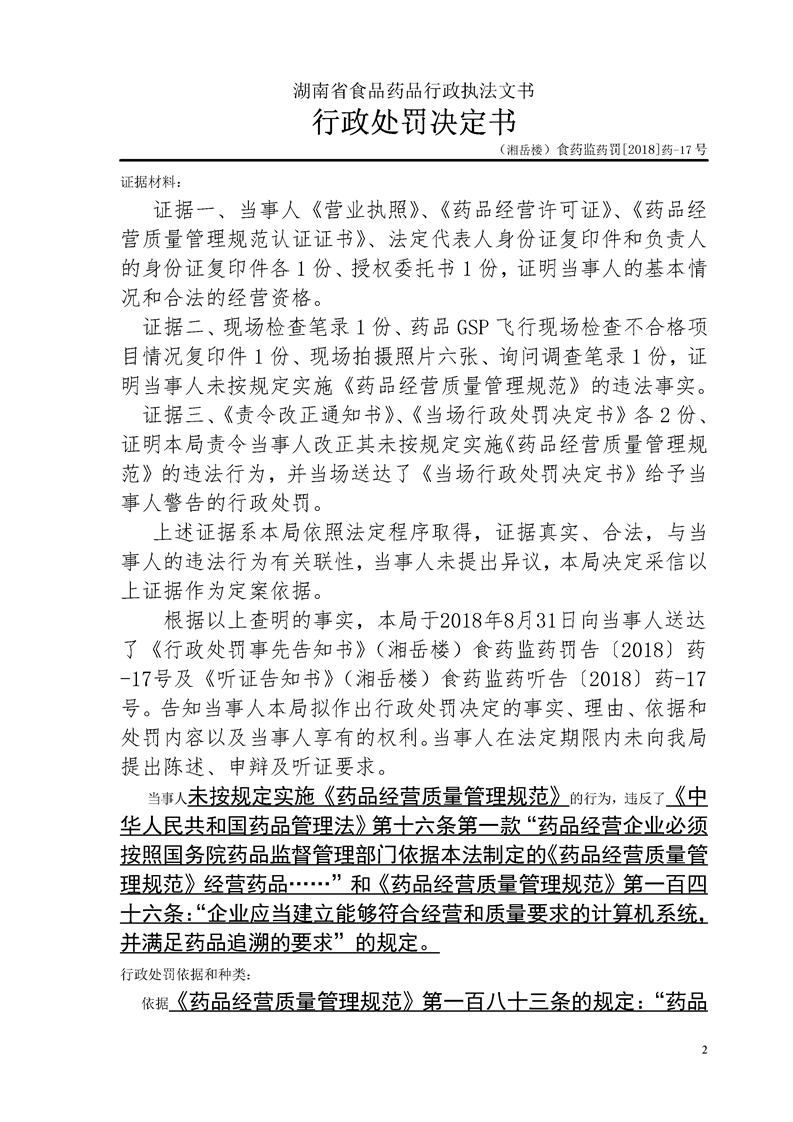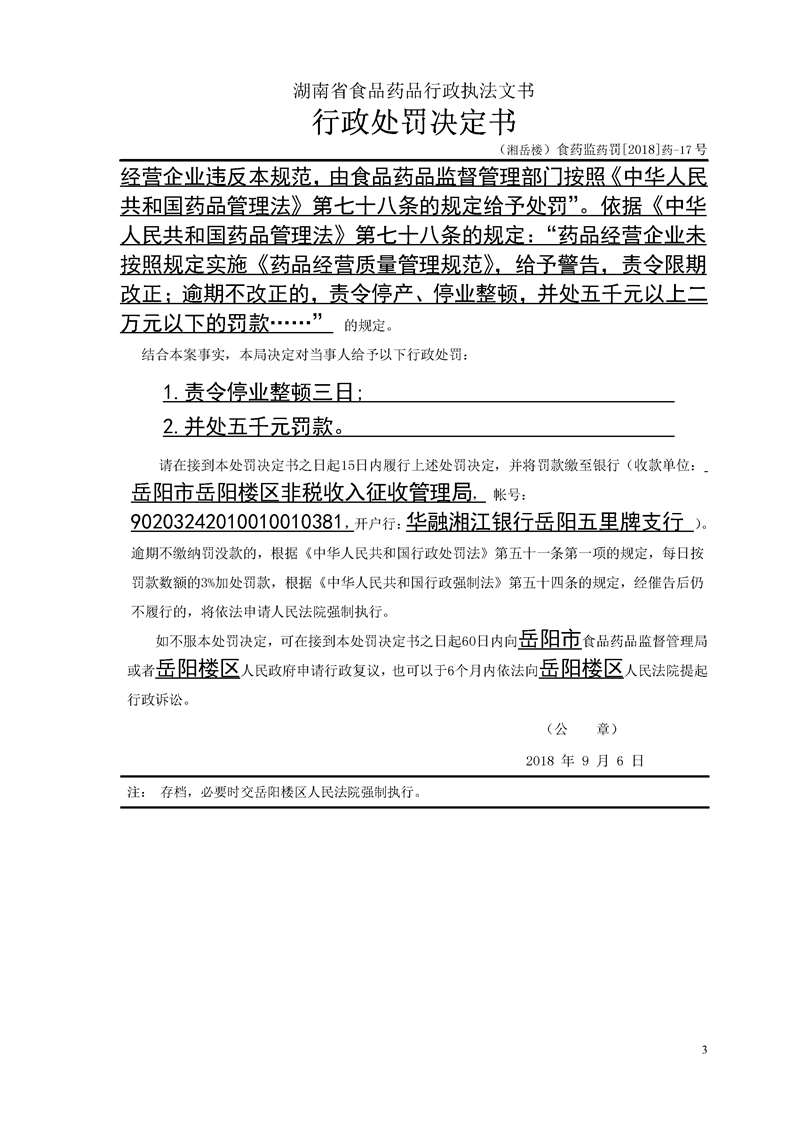 岳阳楼区食品药品监督管理局行政处罚文书公示(2018年9月第十一期)