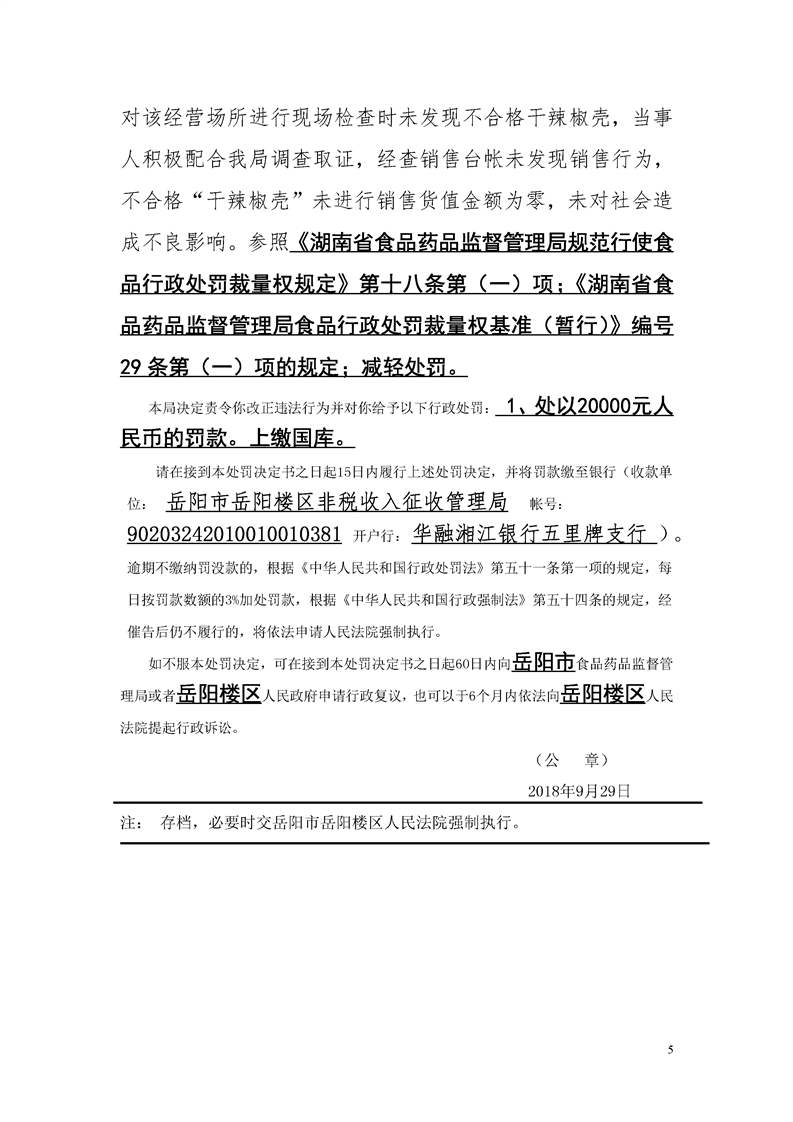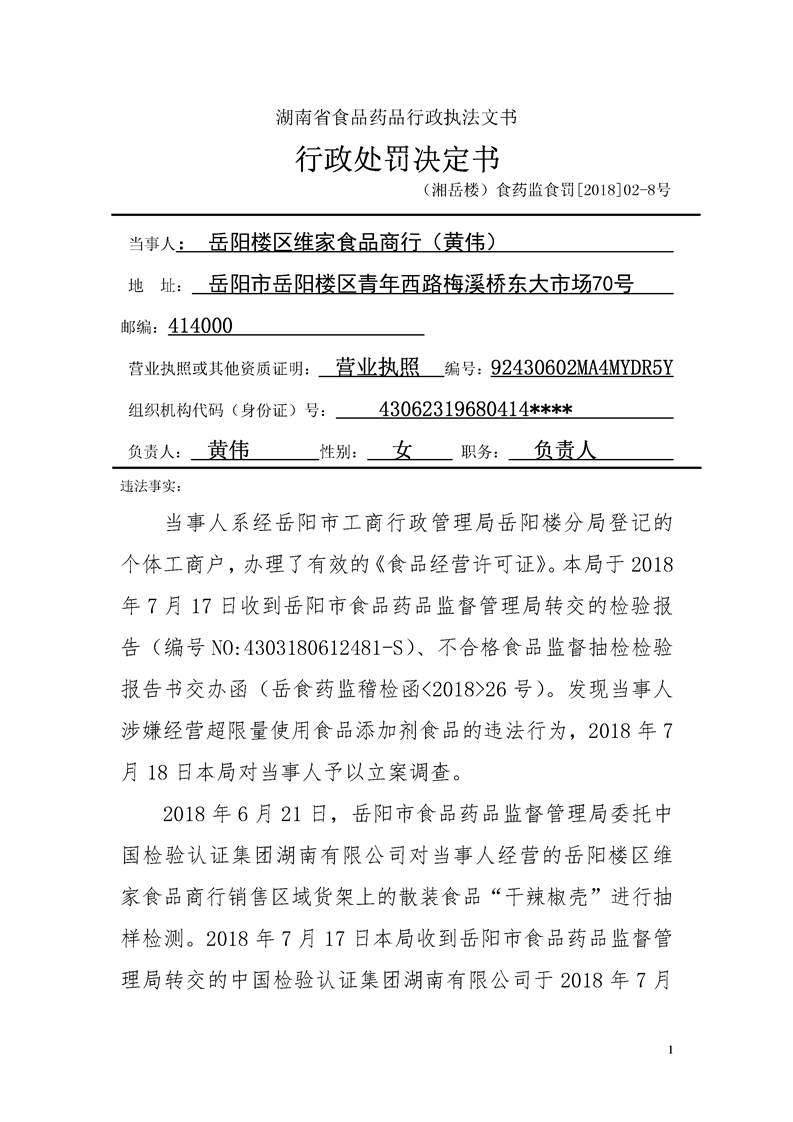 岳阳楼区食品药品监督管理局行政处罚案件文书公示(2018年十月第二期)