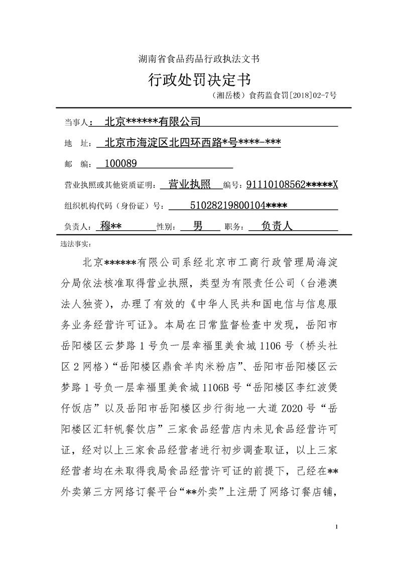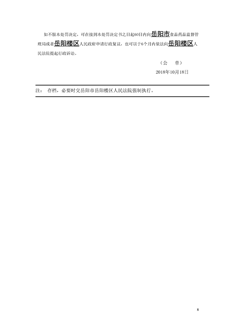 岳阳楼区食品药品监督管理局行政处罚案件文书公示(2018年十一月第二期)