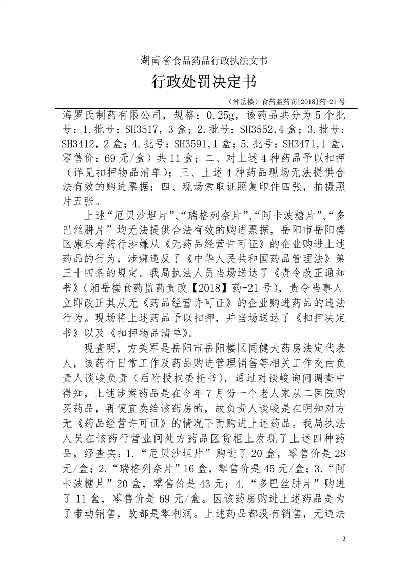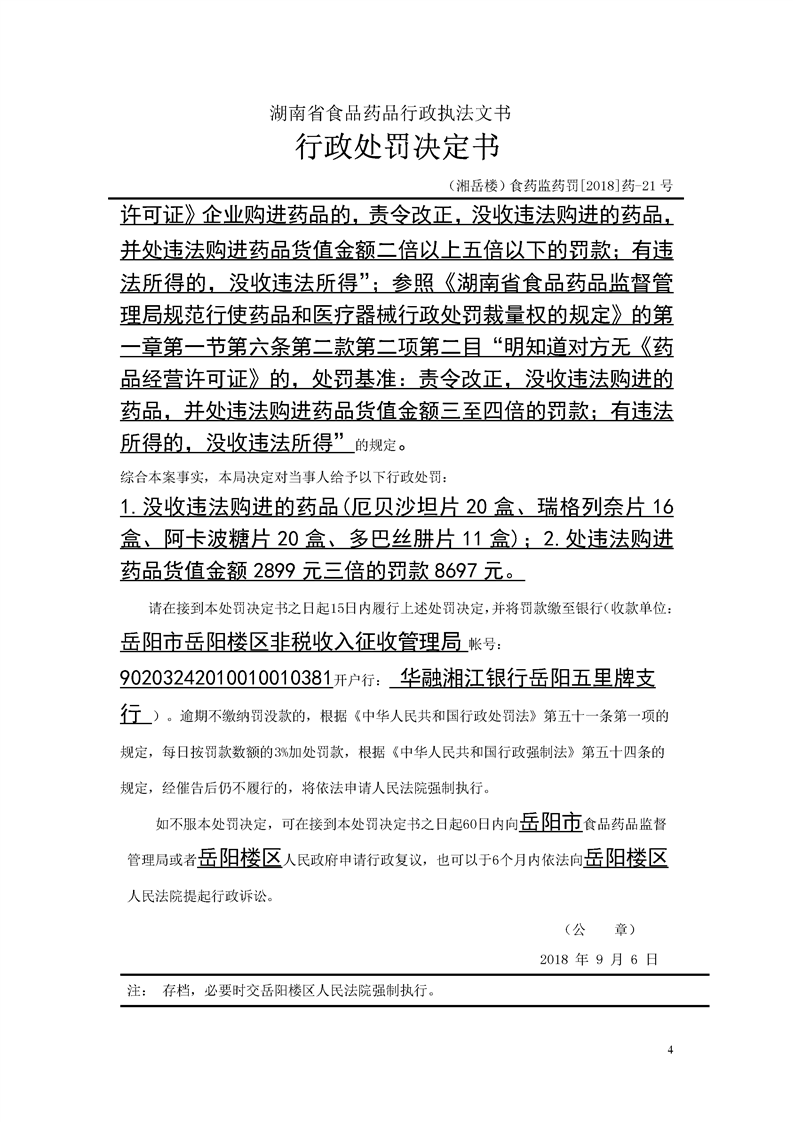 岳阳楼区食品药品监督管理局行政处罚案件文书公示(2018年十一月第四期)