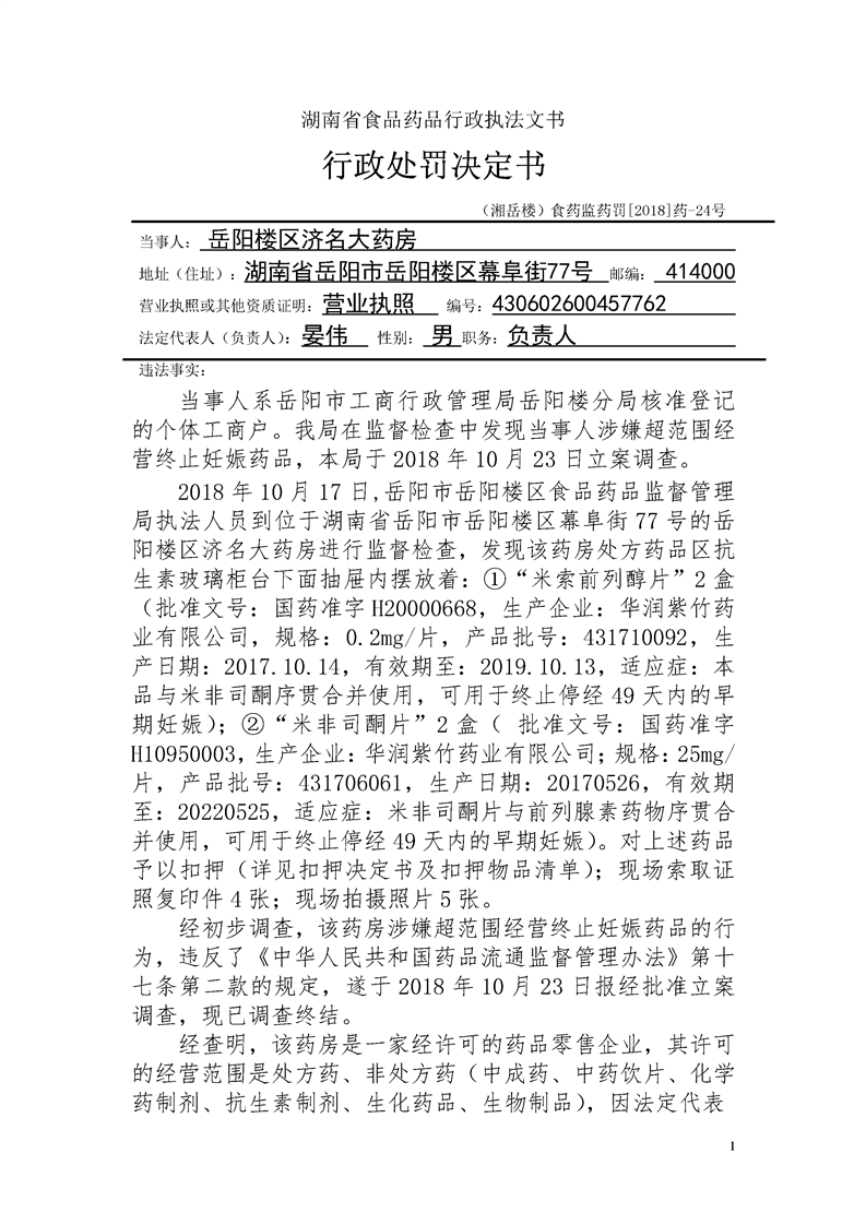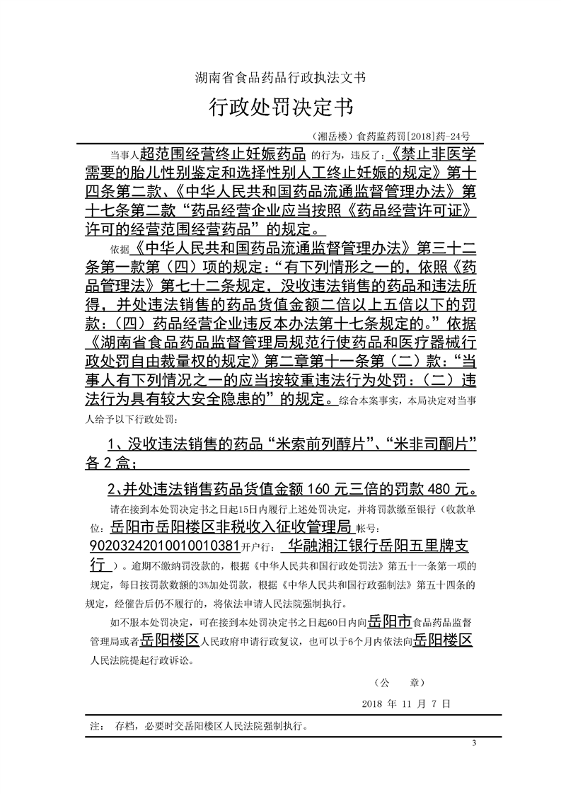 岳阳楼区食品药品监督管理局行政处罚案件文书公示(2018年十一月第七期)