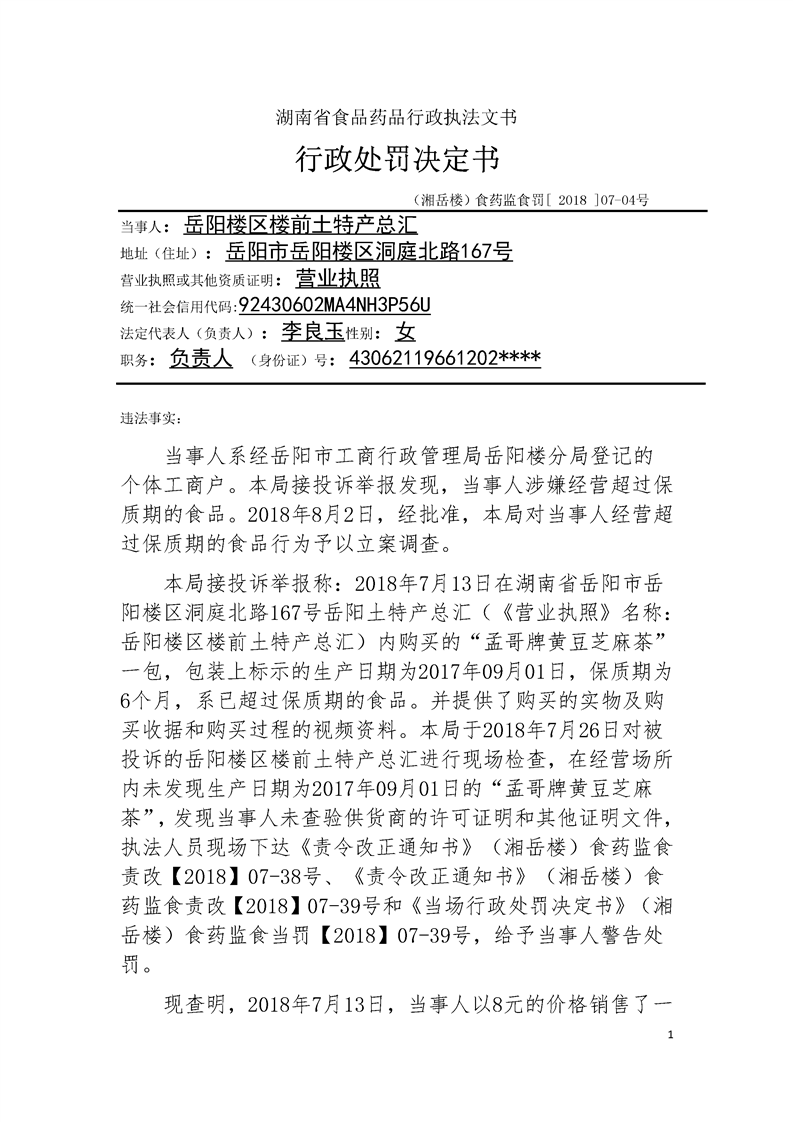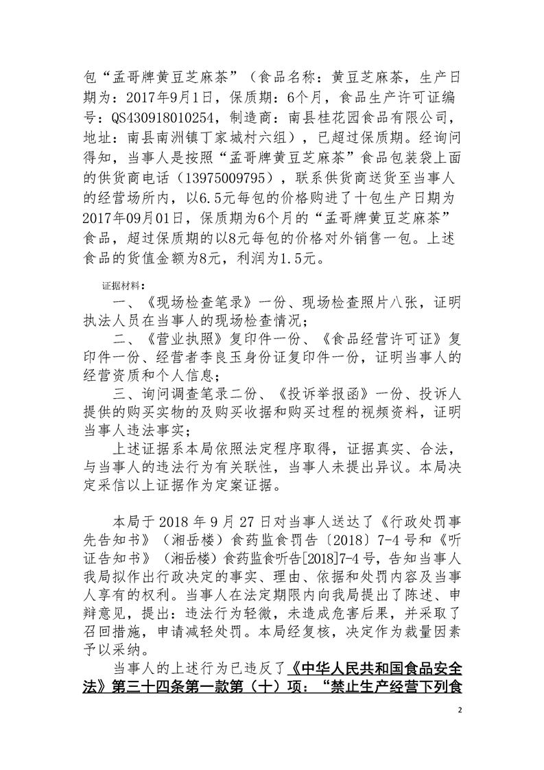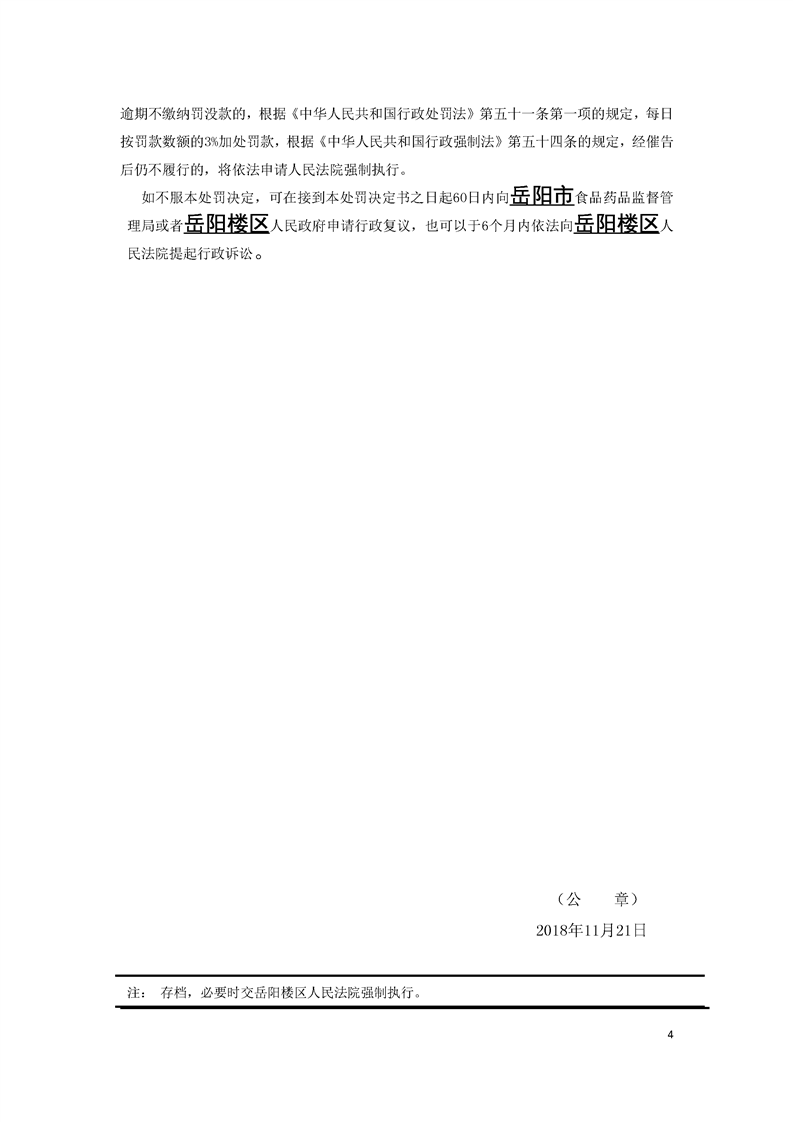 岳阳楼区食品药品监督管理局行政处罚案件文书公示(2018年十一月第九期)