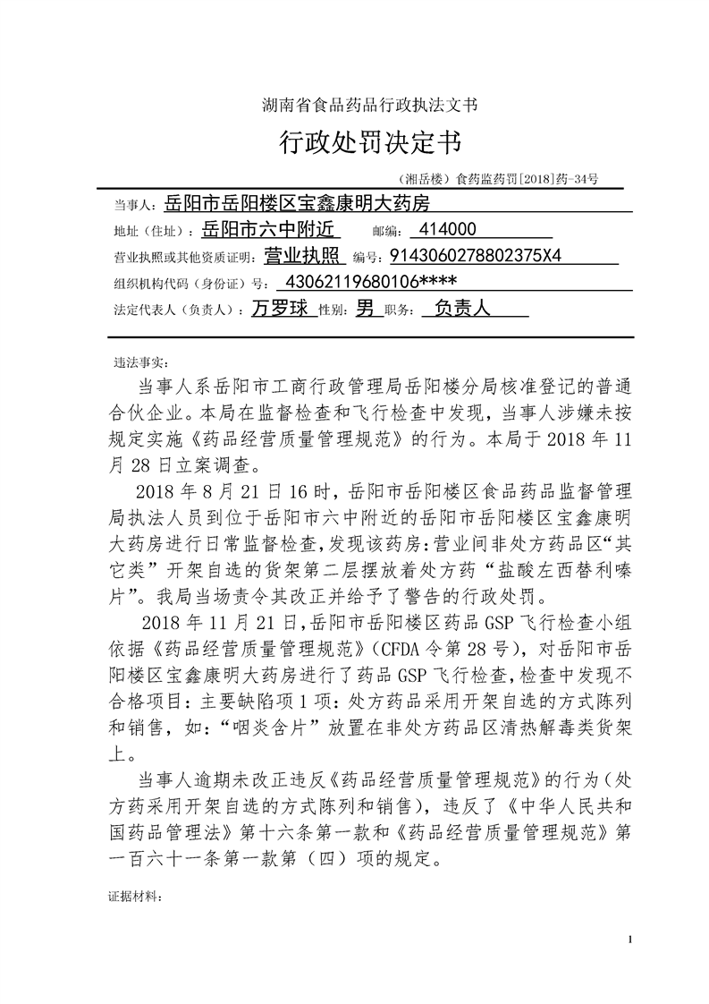 岳阳楼区食品药品监督管理局行政处罚案件文书公示(2018年十二月第一期)