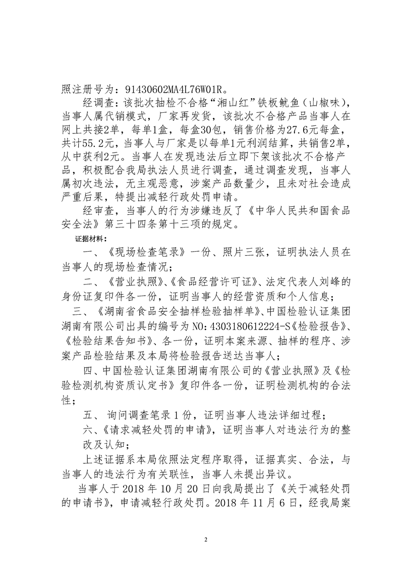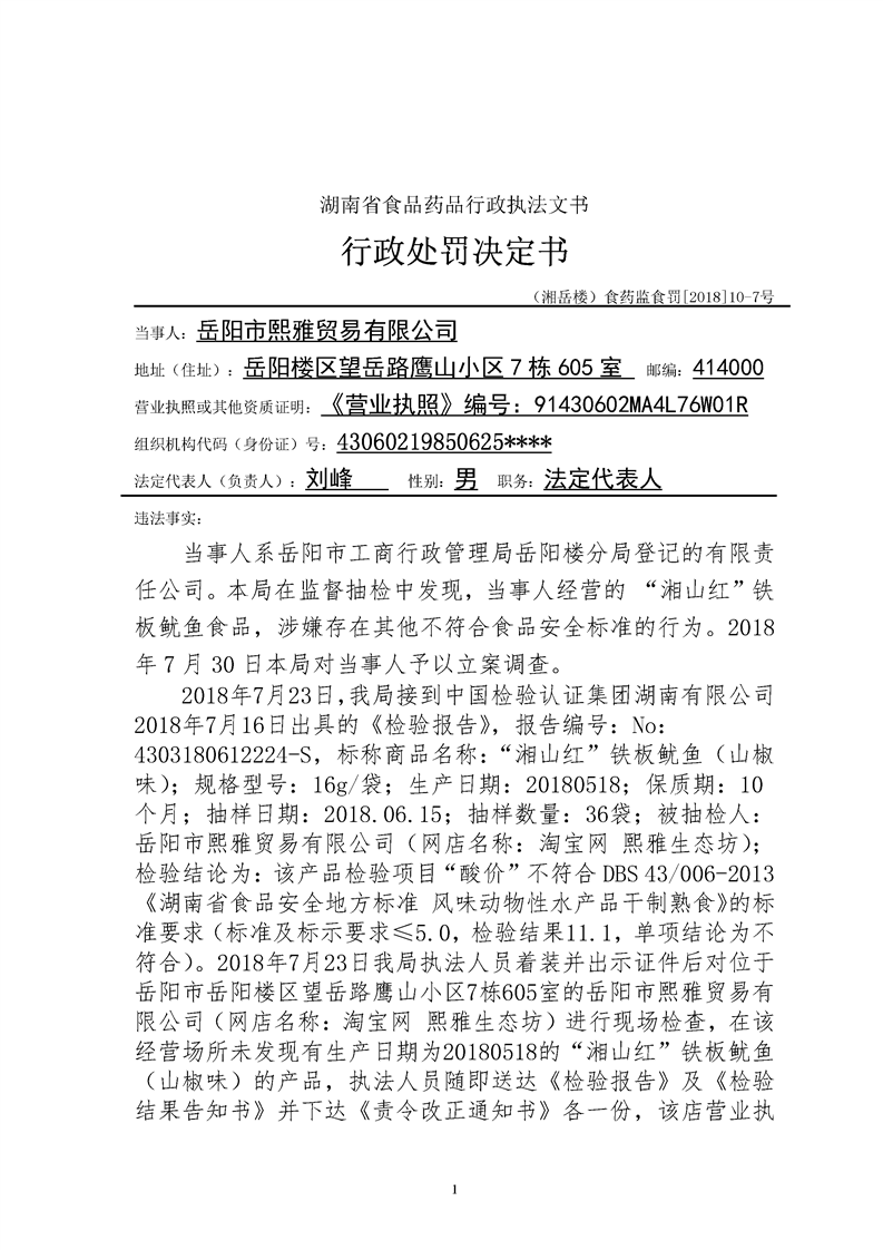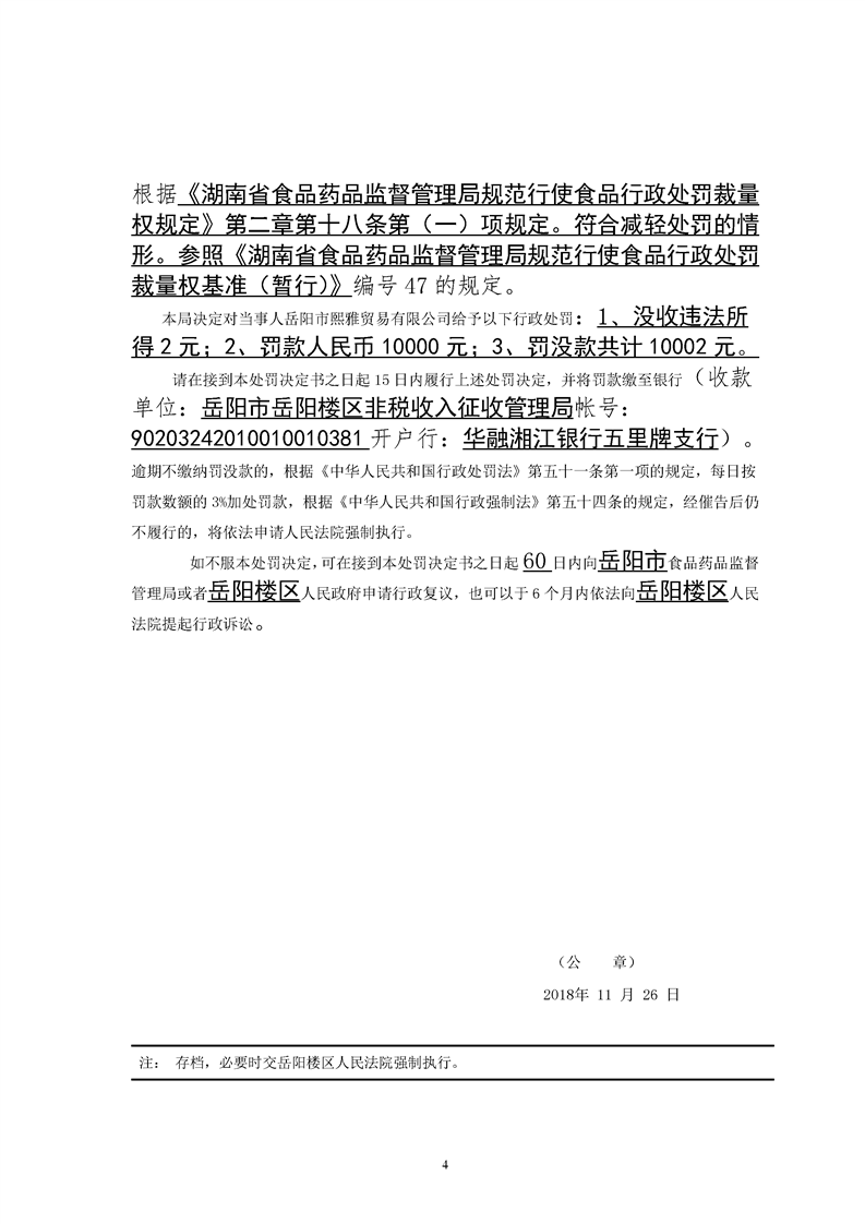 岳阳楼区食品药品监督管理局行政处罚案件文书公示(2018年十二月第十期)