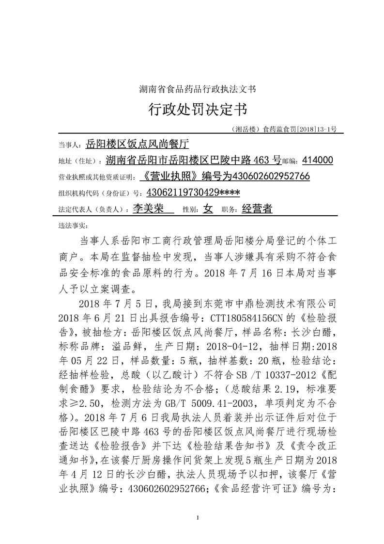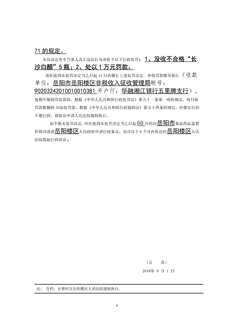 岳阳楼区食品药品监督管理局行政处罚案件文书公示(2018年十二月第十二期)