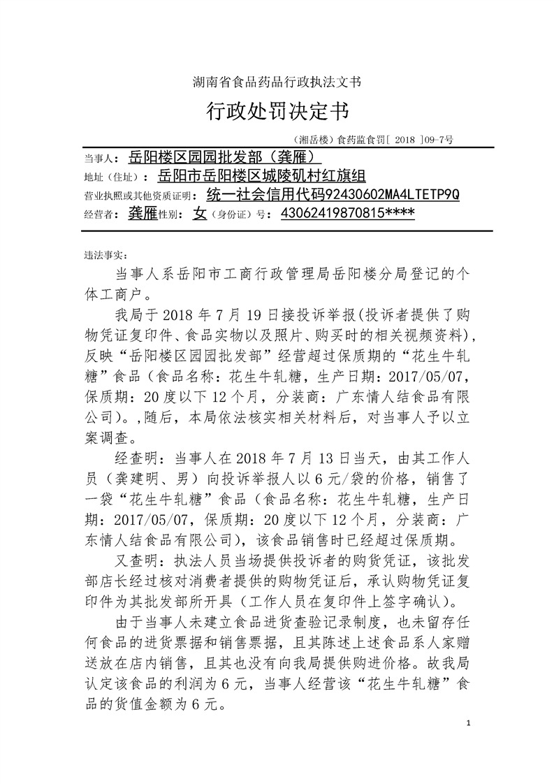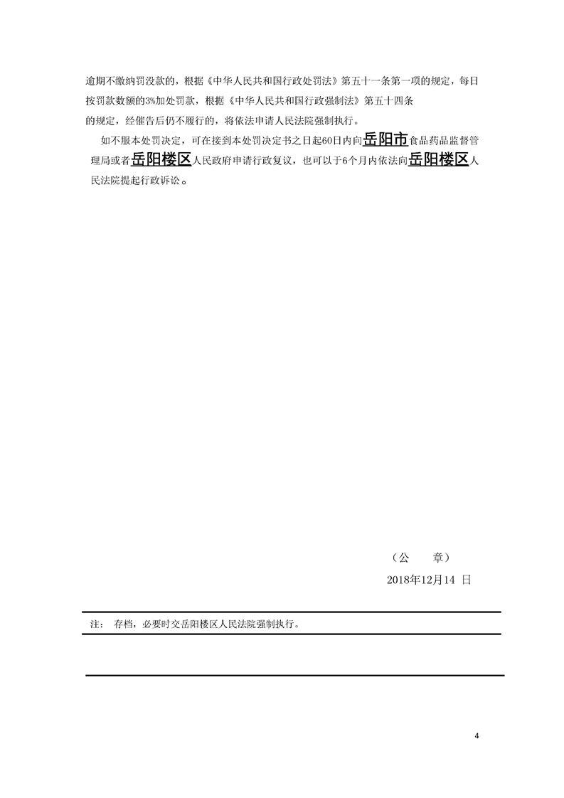 岳阳楼区食品药品监督管理局行政处罚案件文书公示(2018年十二月第十五期)