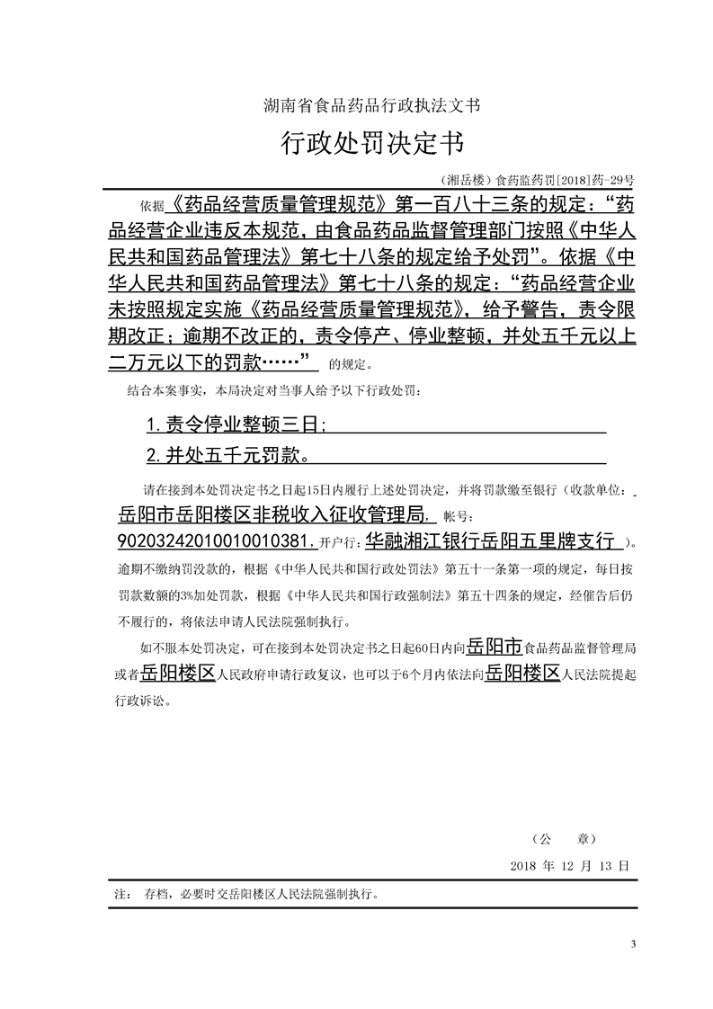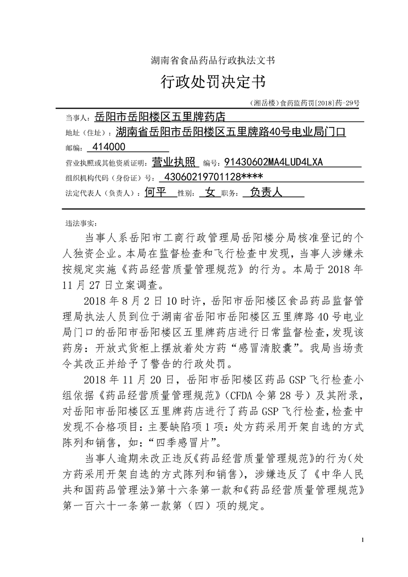 岳阳楼区食品药品监督管理局行政处罚案件文书公示(2018年十二月第十七期)