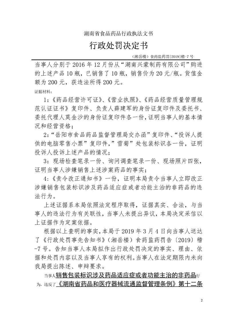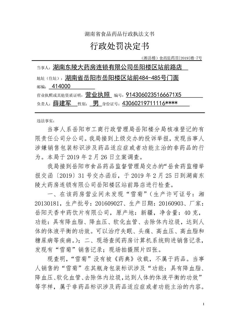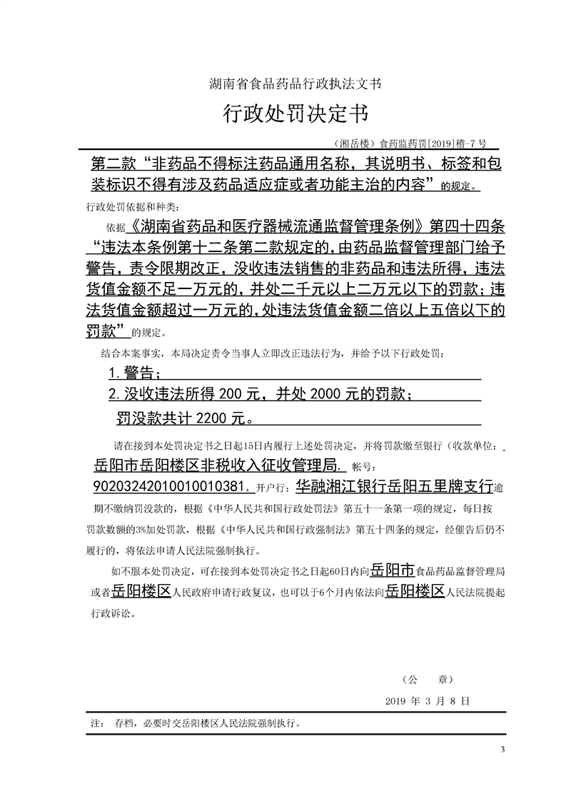 岳阳楼区食品药品监督管理局行政处罚案件文书公示(2019年三月第一期)