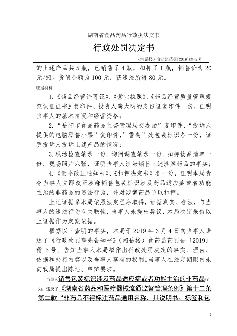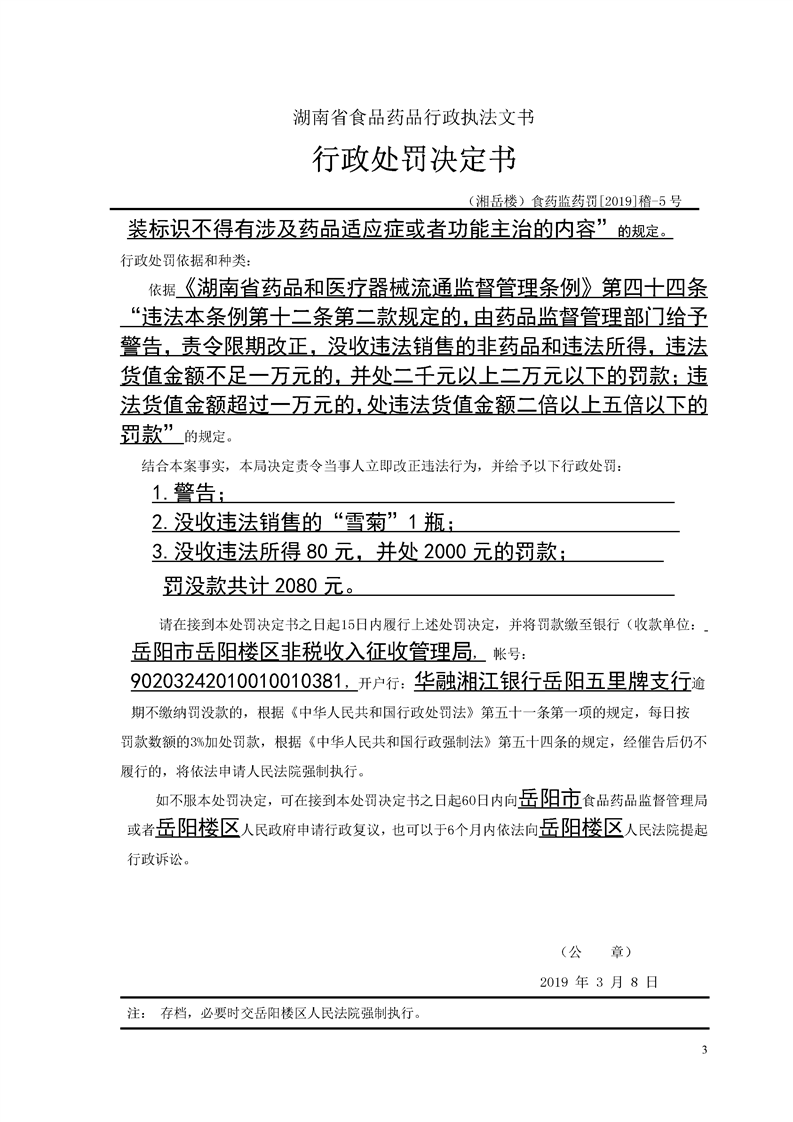 岳阳楼区食品药品监督管理局行政处罚案件文书公示(2019年三月第四期)