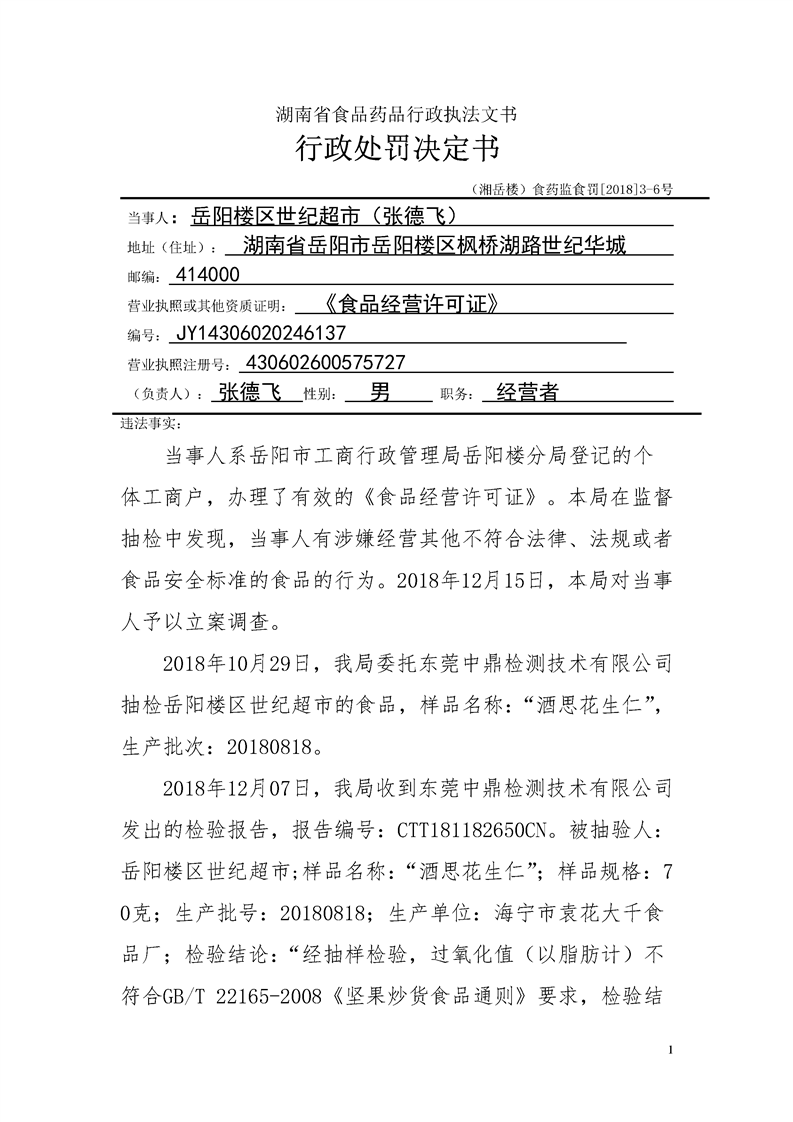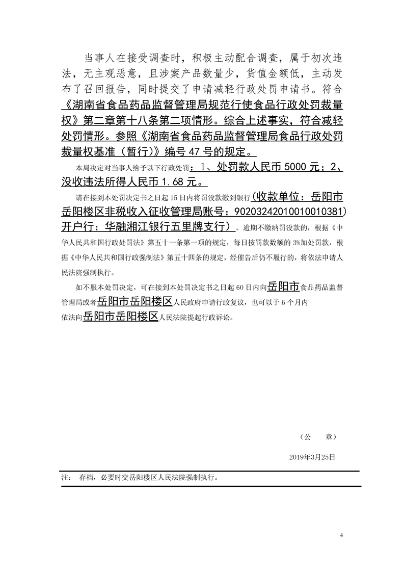 岳阳楼区食品药品监督管理局行政处罚案件文书公示(2019年四月第一期)