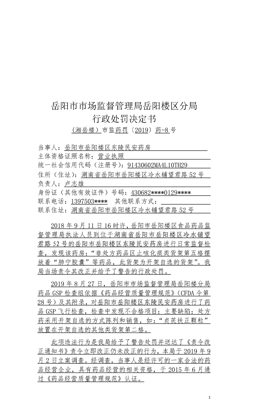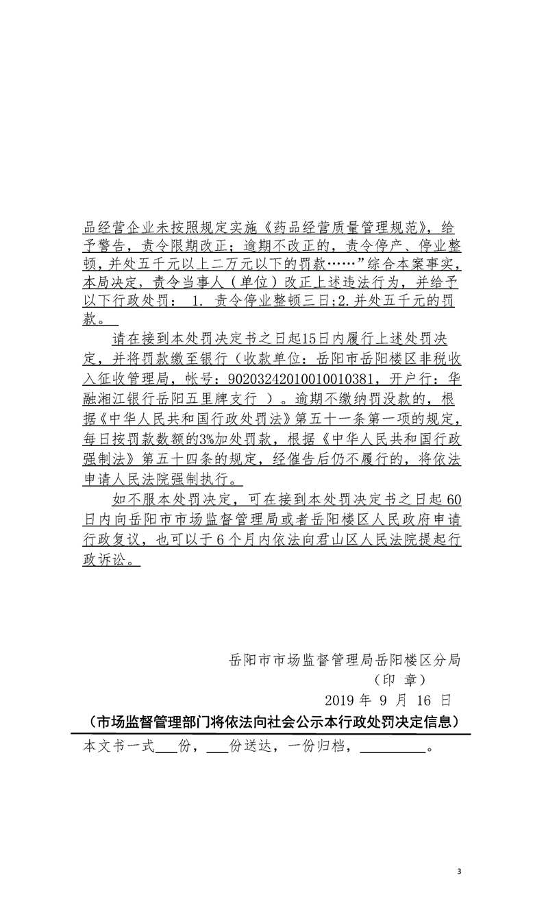 岳阳市市场监督管理局岳阳楼区分局行政处罚文书公示(2019年9月份第二期)