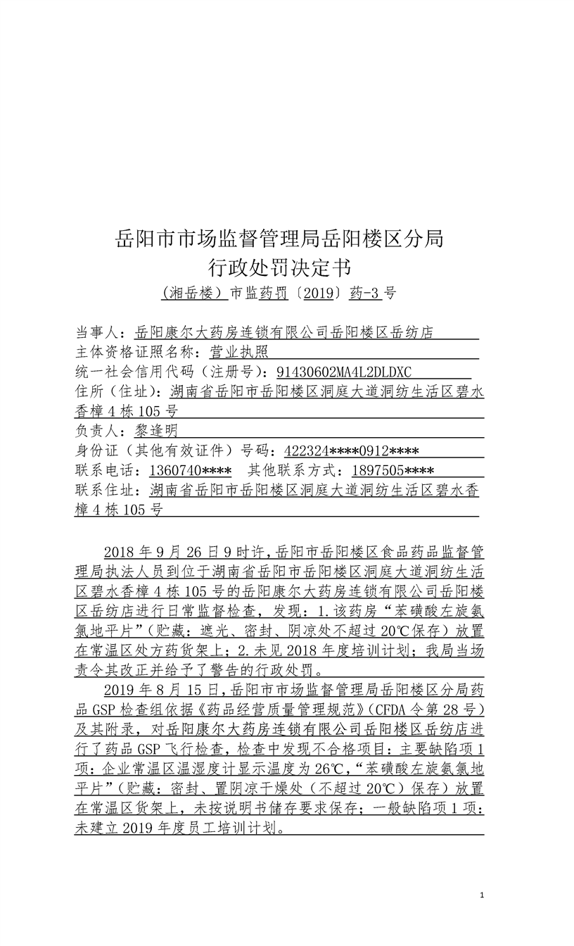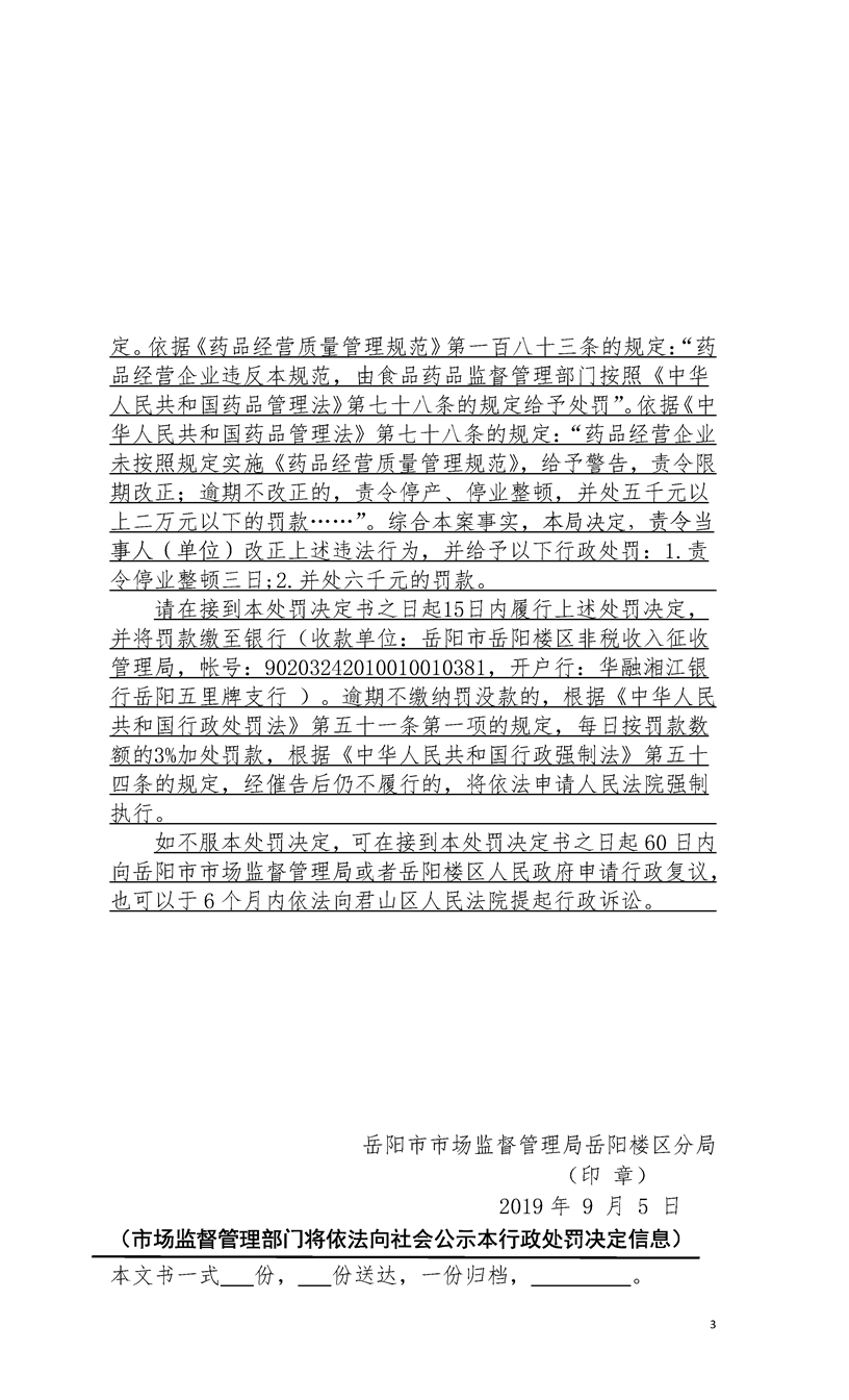 岳阳市市场监督管理局岳阳楼区分局行政处罚文书公示(2019年9月份第三期)