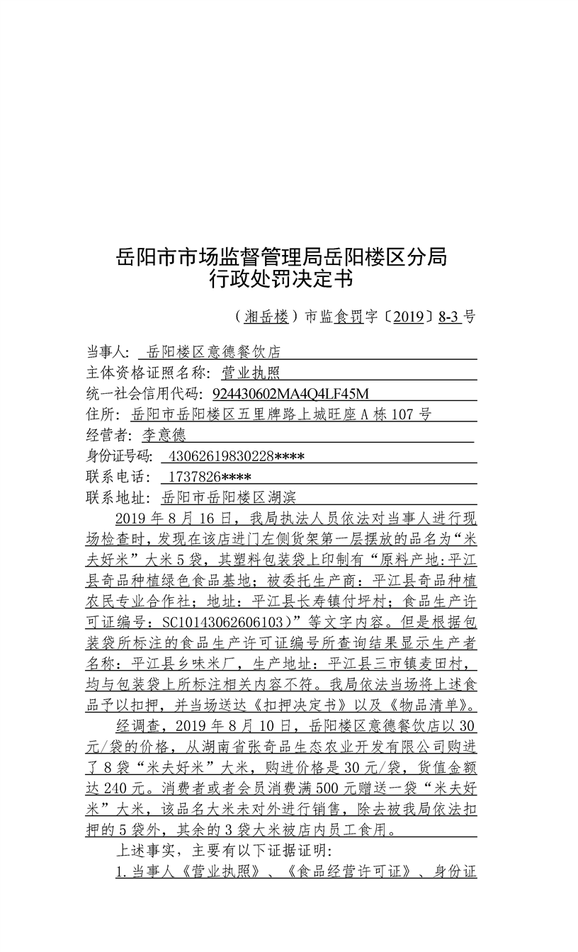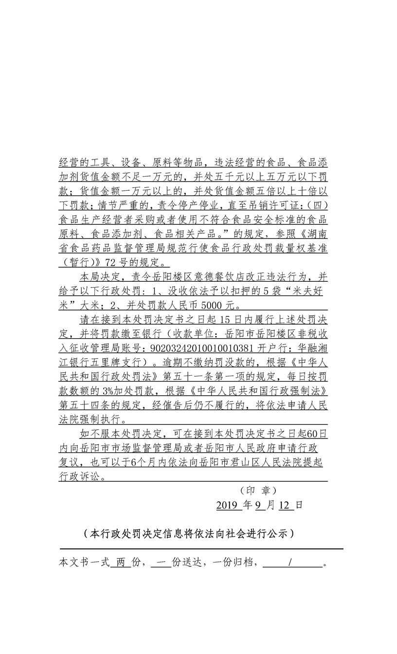 岳阳市市场监督管理局岳阳楼区分局行政处罚文书公示(2019年9月份第九期)