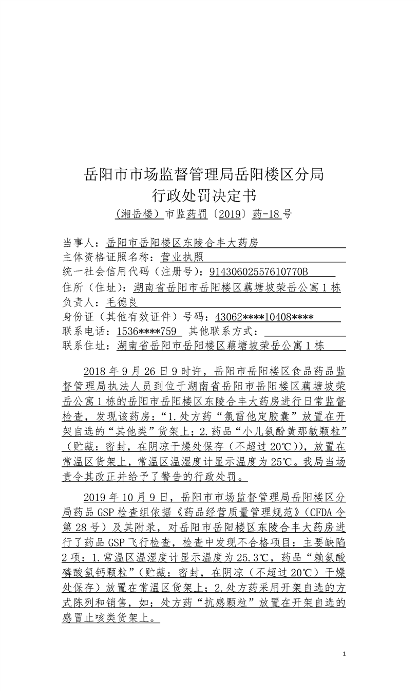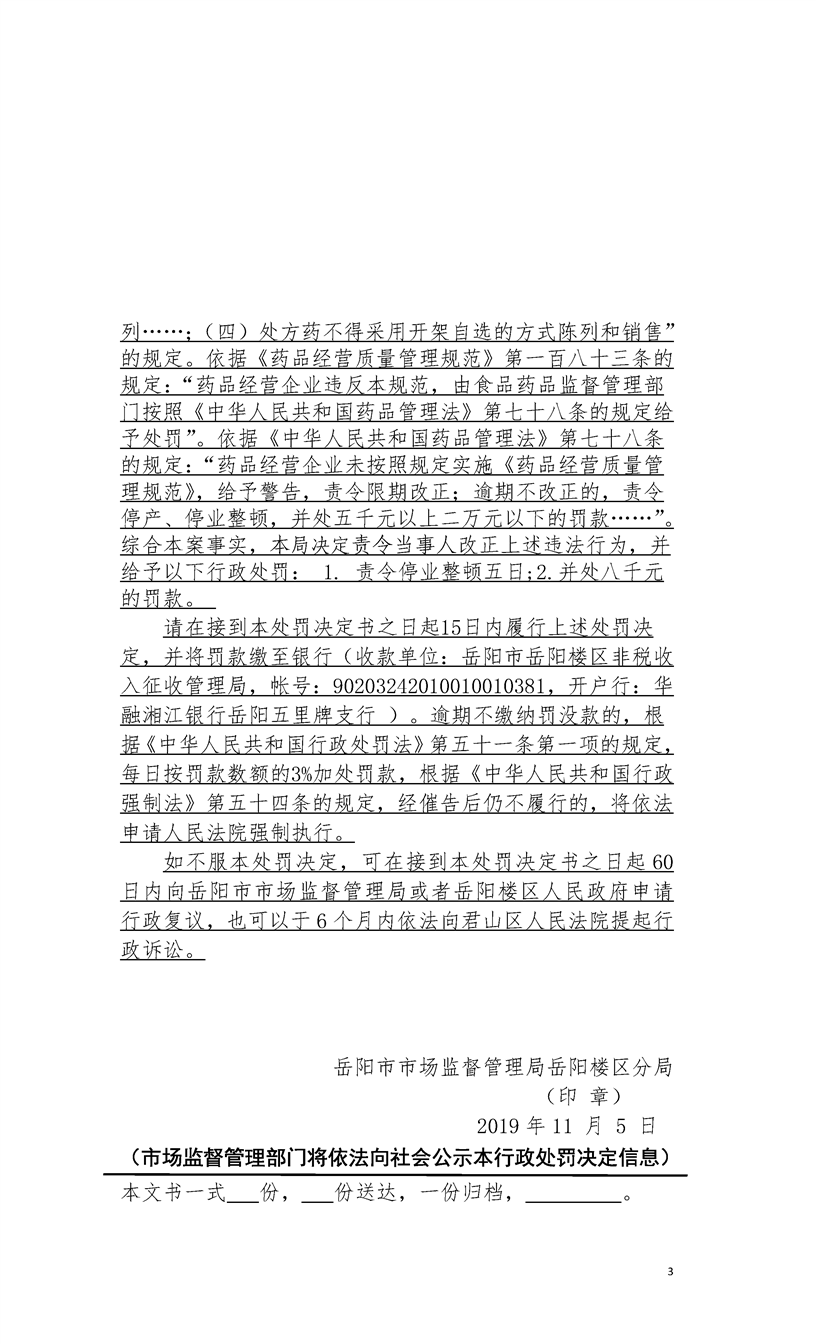 岳阳市市场监督管理局岳阳楼区分局行政处罚文书公示(2019年11月份第四期)