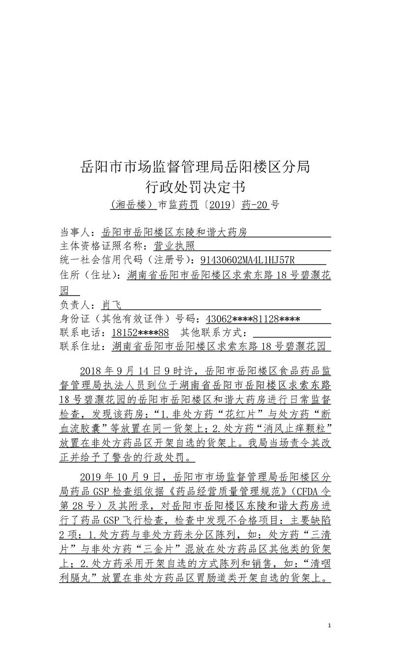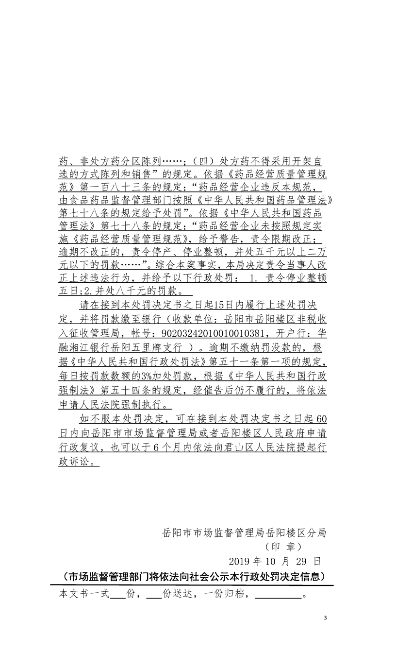 岳阳市市场监督管理局岳阳楼区分局行政处罚文书公示(2019年11月份第五期)