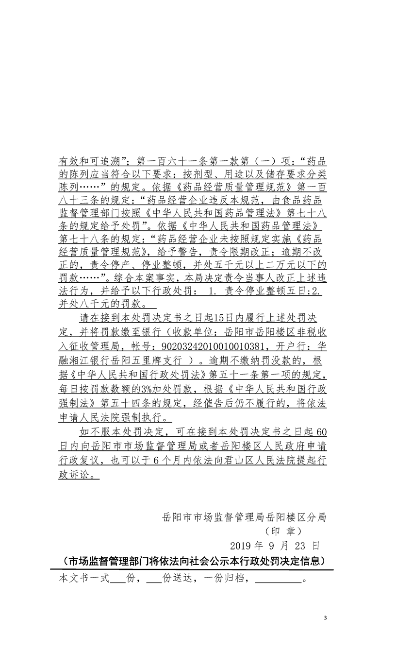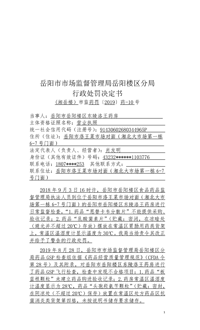 岳阳市市场监督管理局岳阳楼区分局行政处罚文书公示(2019年11月份第七期)