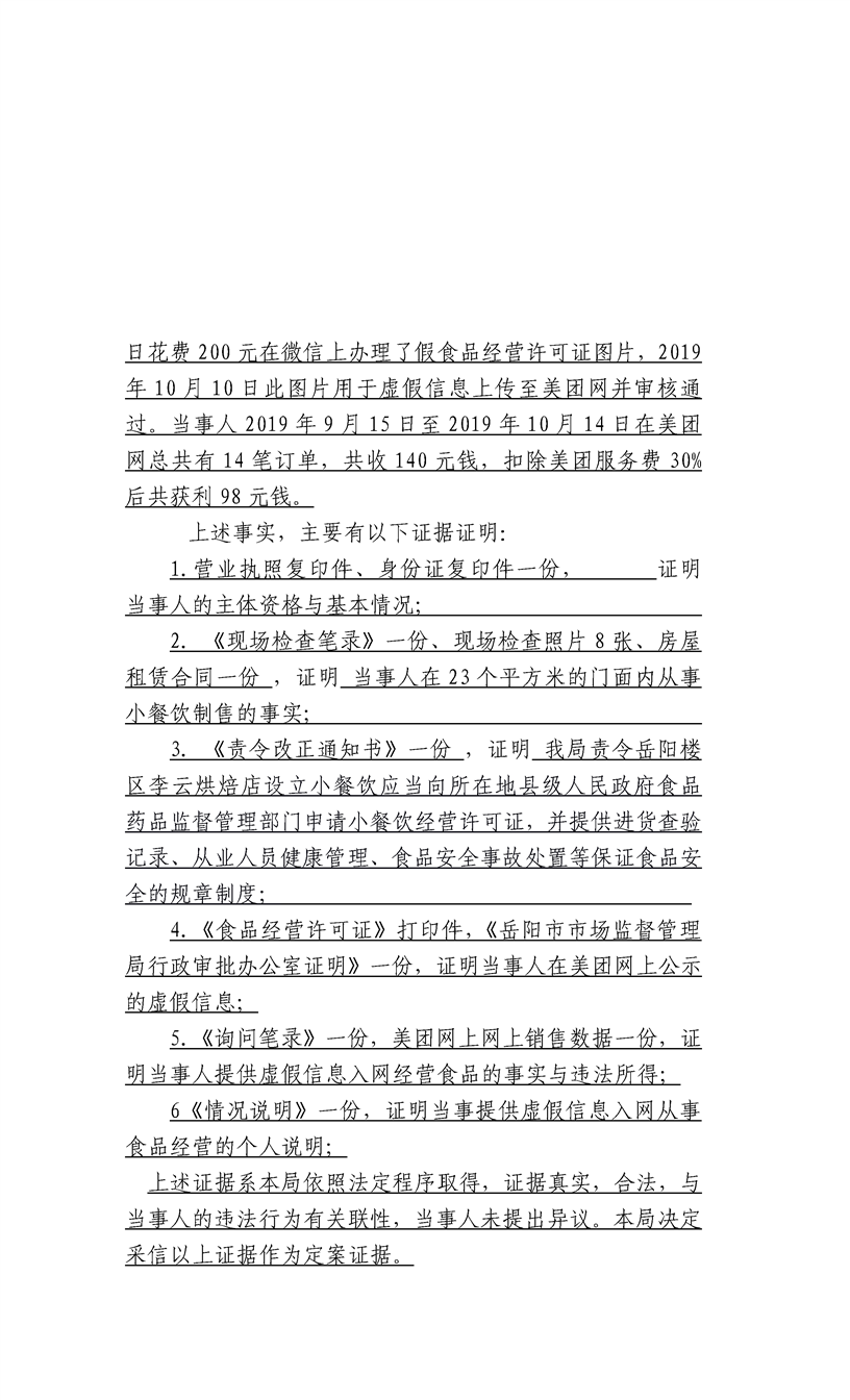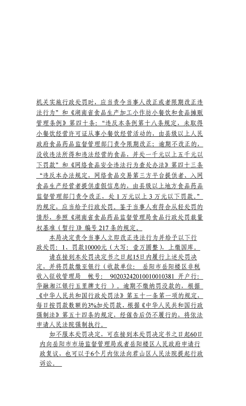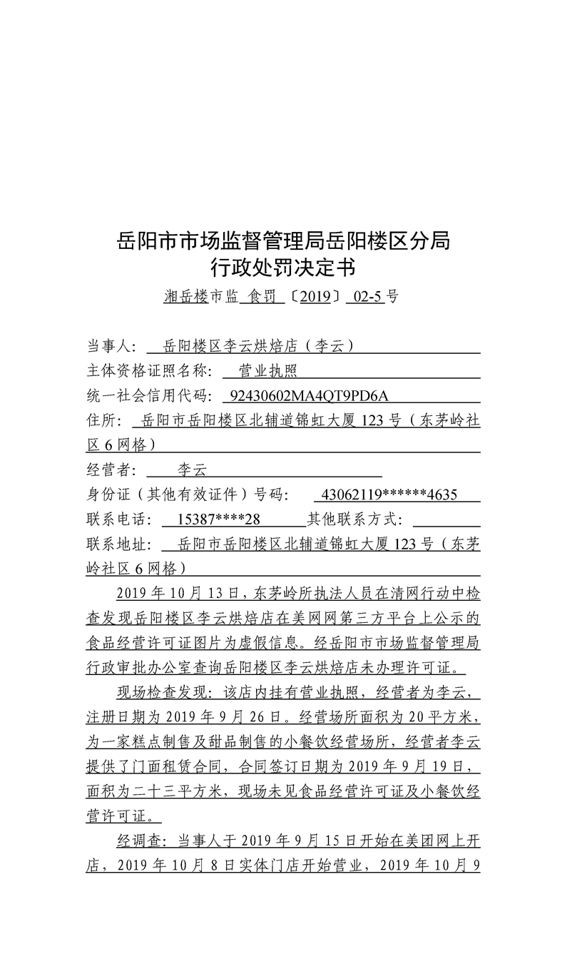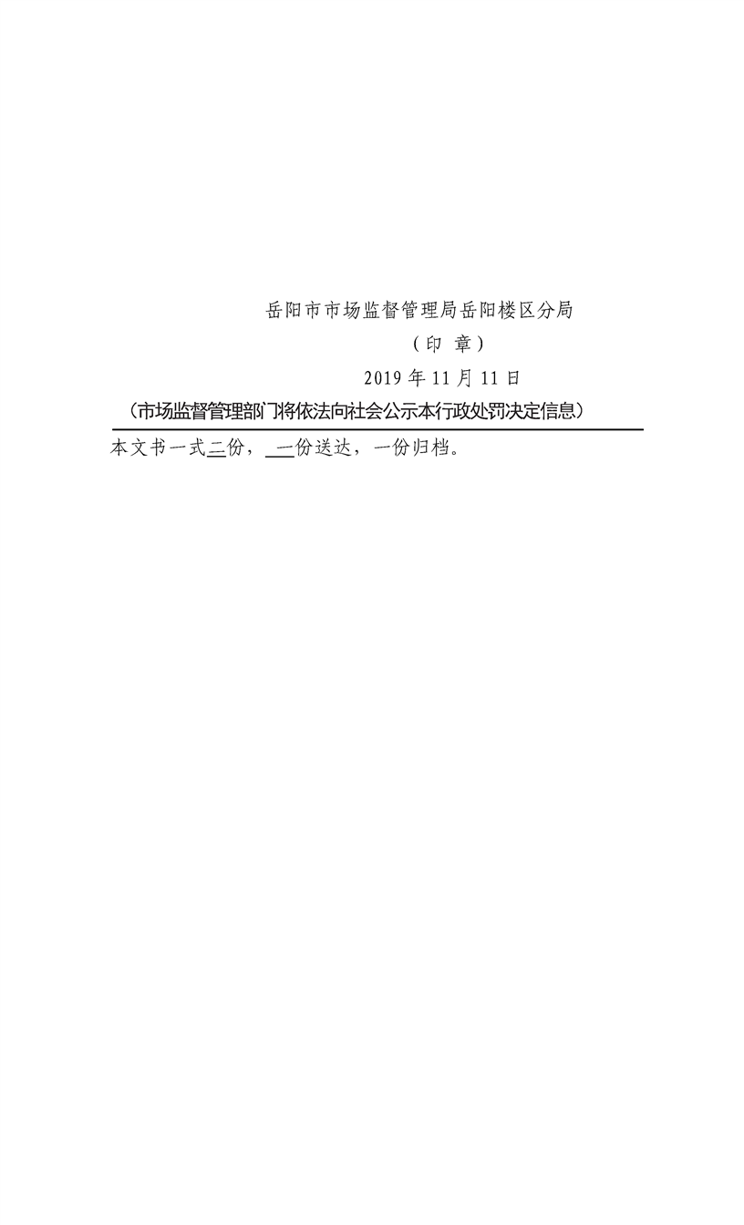 岳阳市市场监督管理局岳阳楼区分局行政处罚文书公示(2019年11月份第十四期)