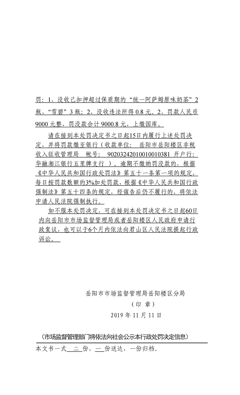岳阳市市场监督管理局岳阳楼区分局行政处罚文书公示(2019年11月份第十五期)
