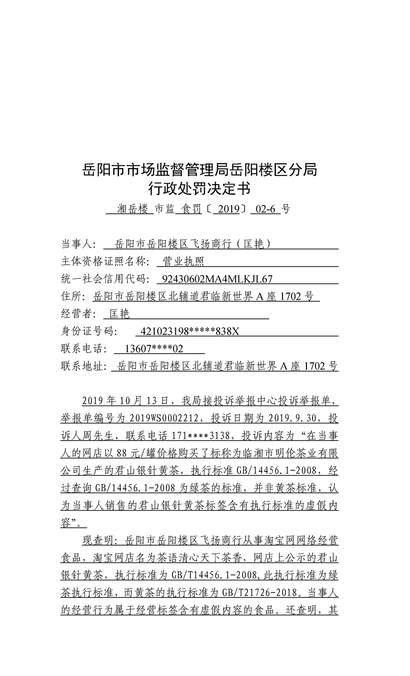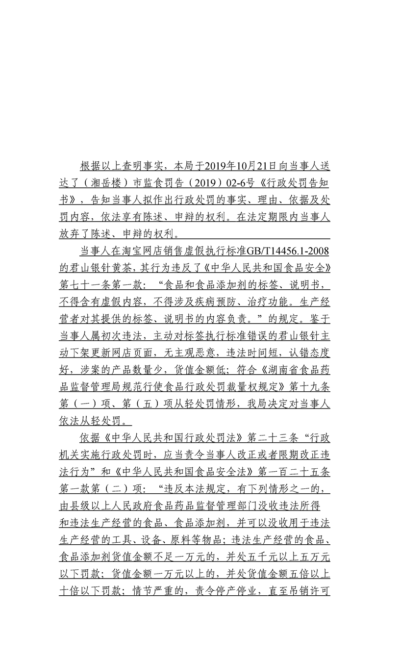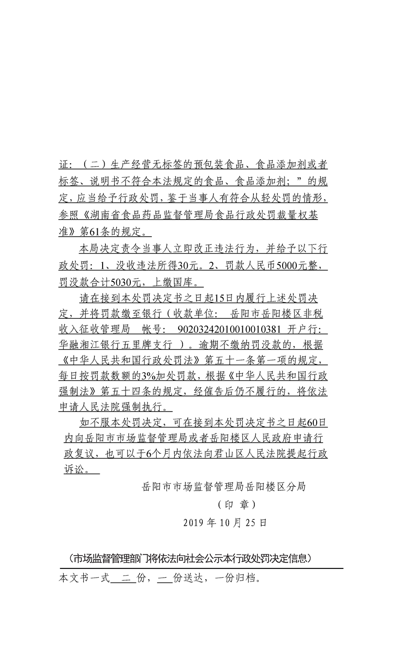 岳阳市市场监督管理局岳阳楼区分局行政处罚文书公示(2019年11月份第十六期)