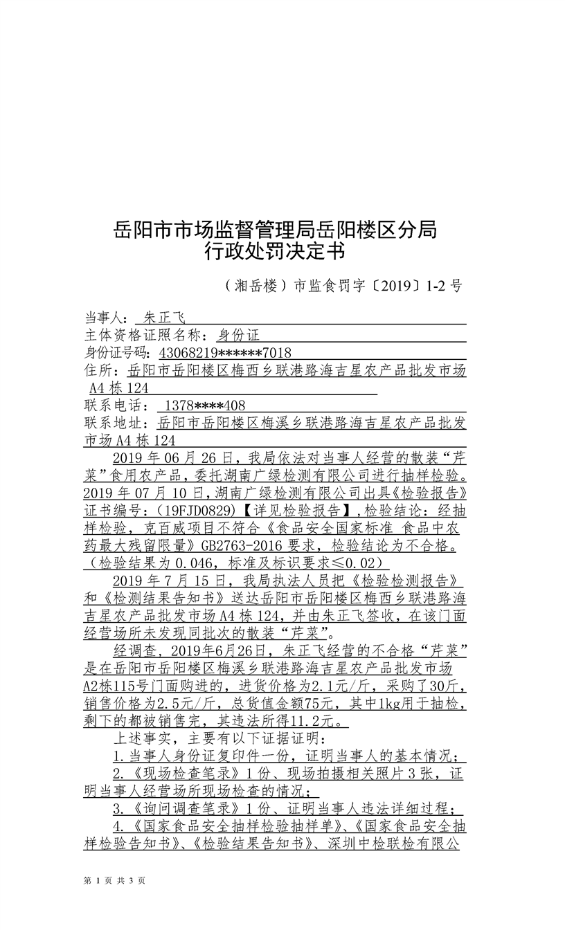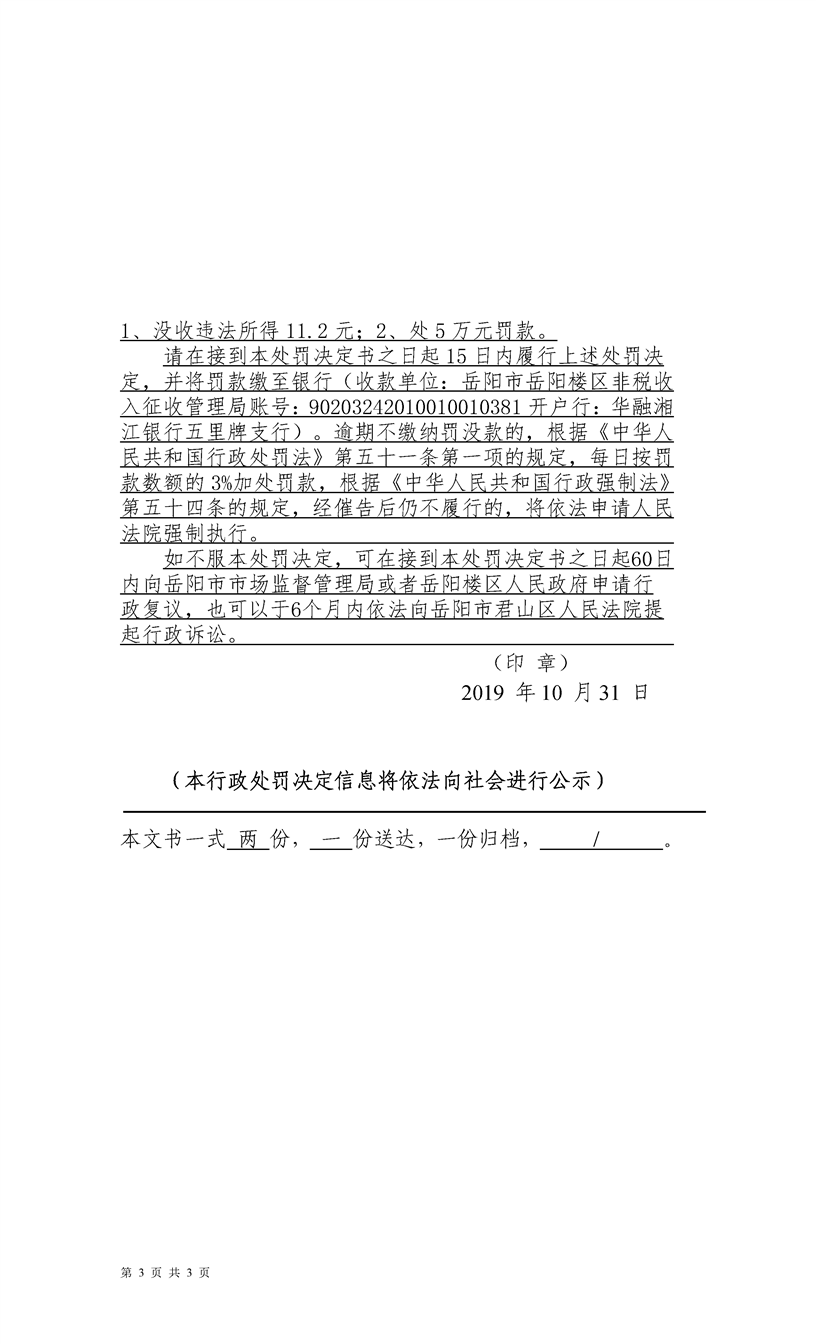 岳阳市市场监督管理局岳阳楼区分局行政处罚文书公示(2019年11月份第十七期)