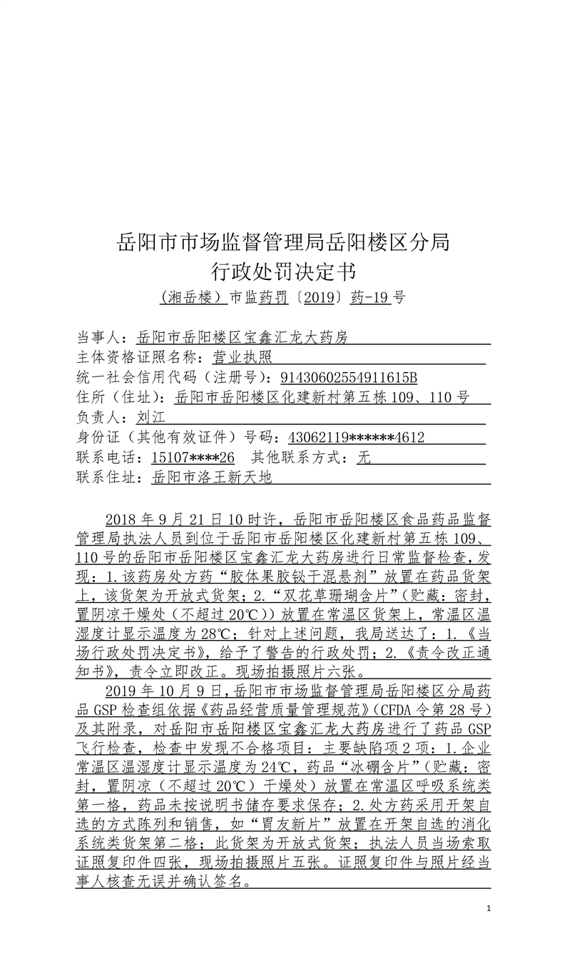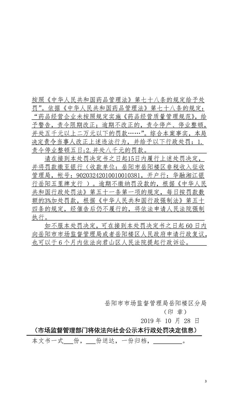 岳阳市市场监督管理局岳阳楼区分局行政处罚文书公示(2019年11月份第二十二期)