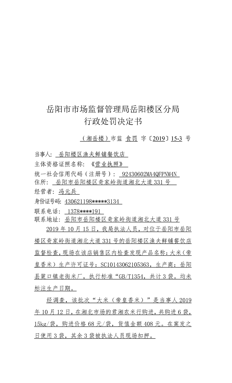 岳阳市市场监督管理局岳阳楼区分局行政处罚文书公示(2019年12月份第五期)