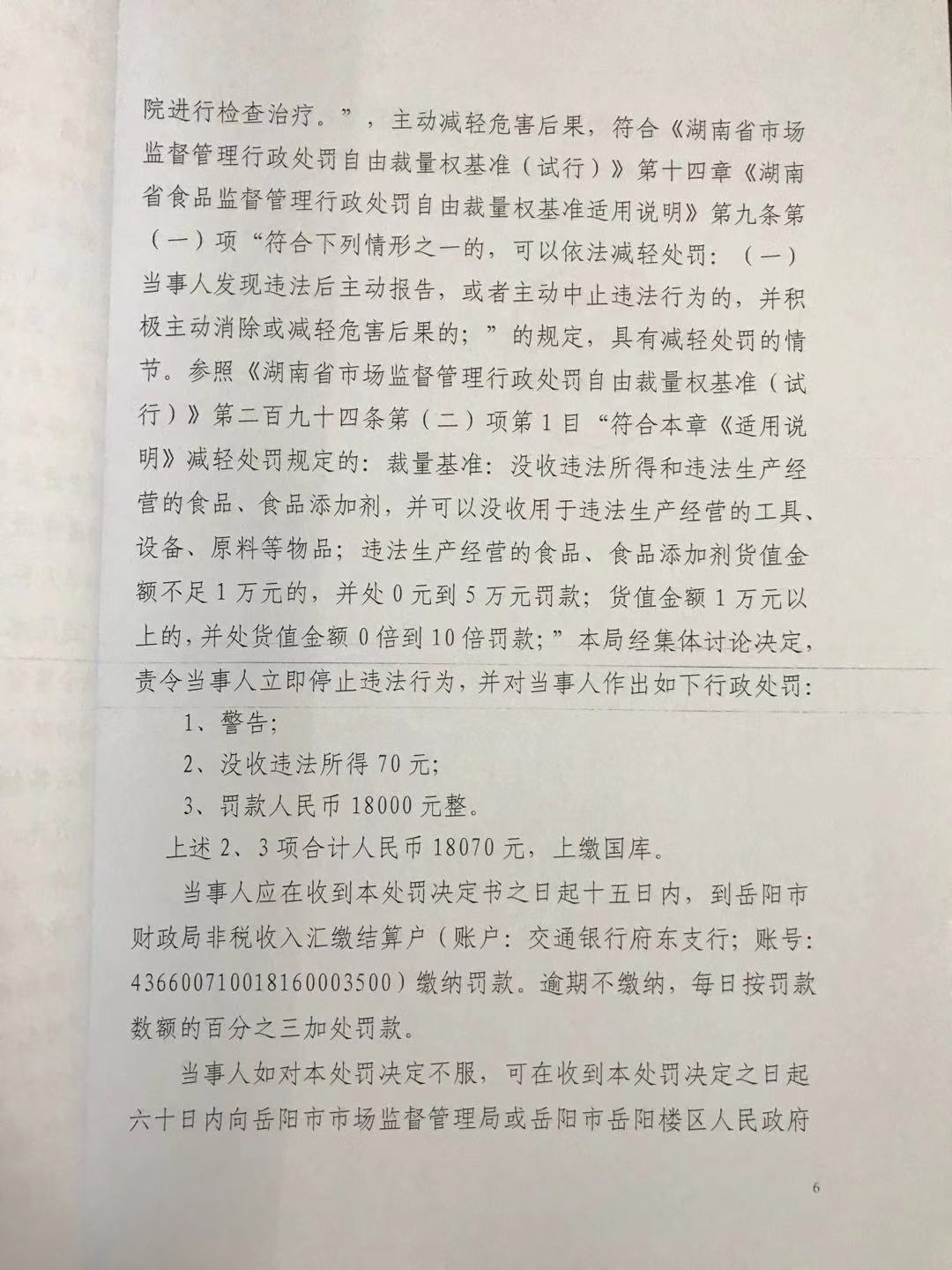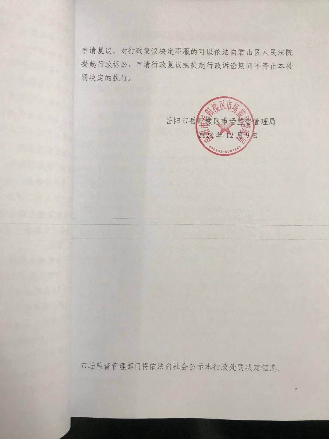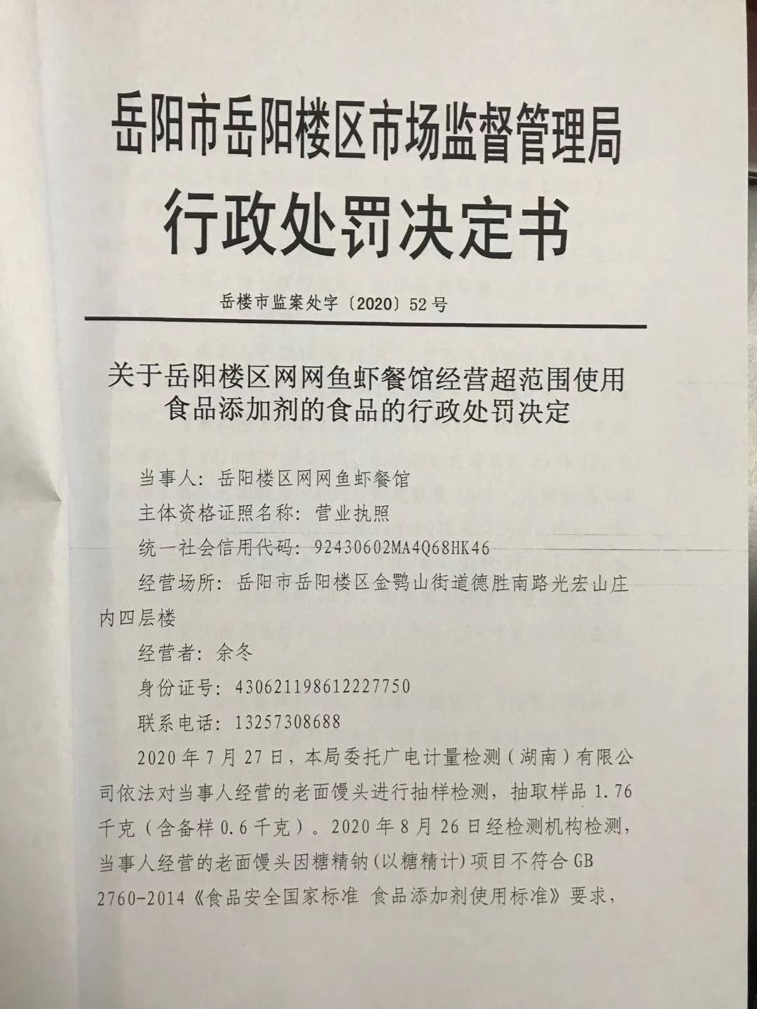 岳阳楼区市场监督管理局行政处罚文书公示(岳阳楼区网网鱼虾餐馆)