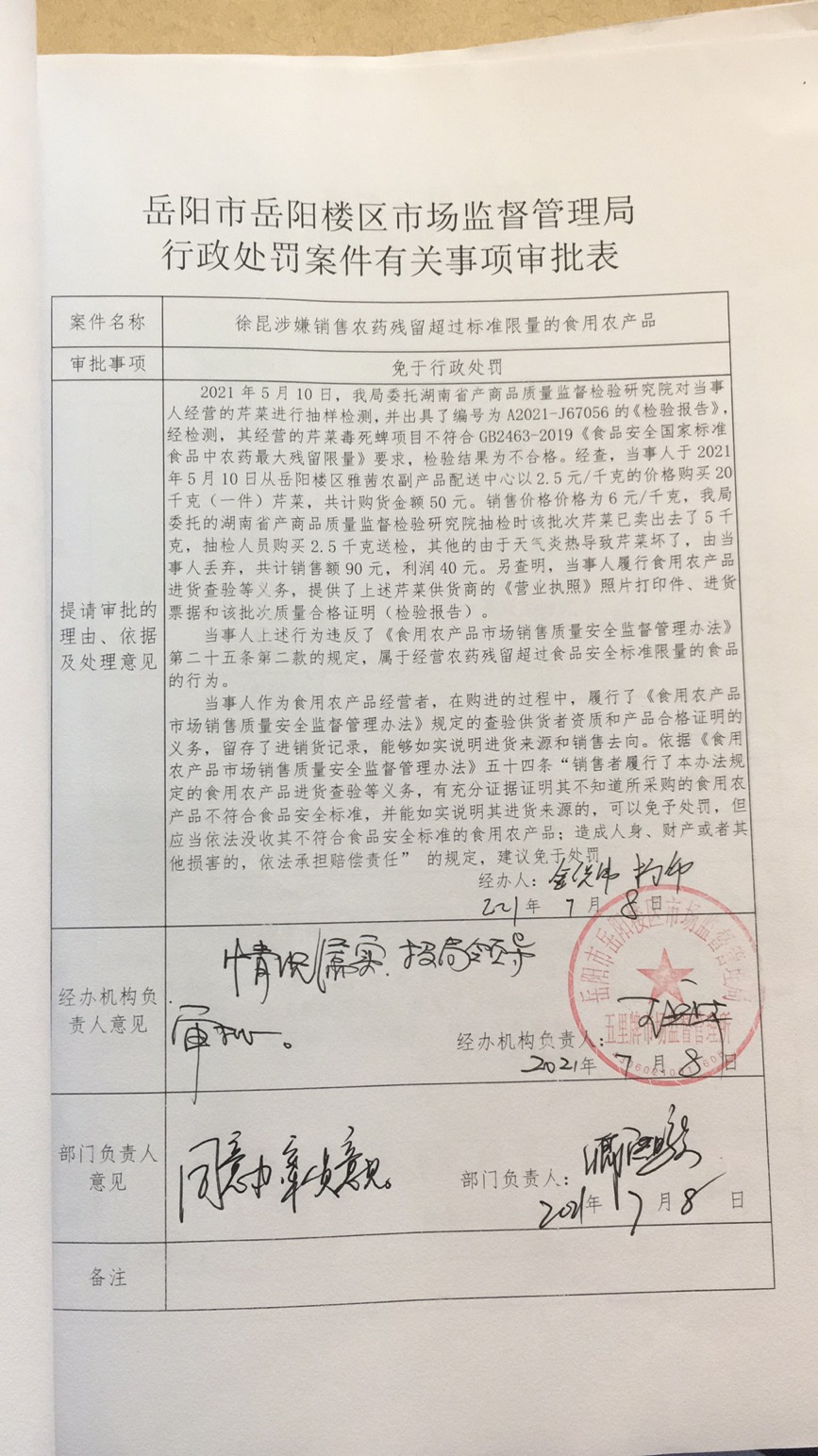 岳阳市岳阳楼区市场监管局关于评价性抽检不合格食品(芹菜)核查处置信息公示