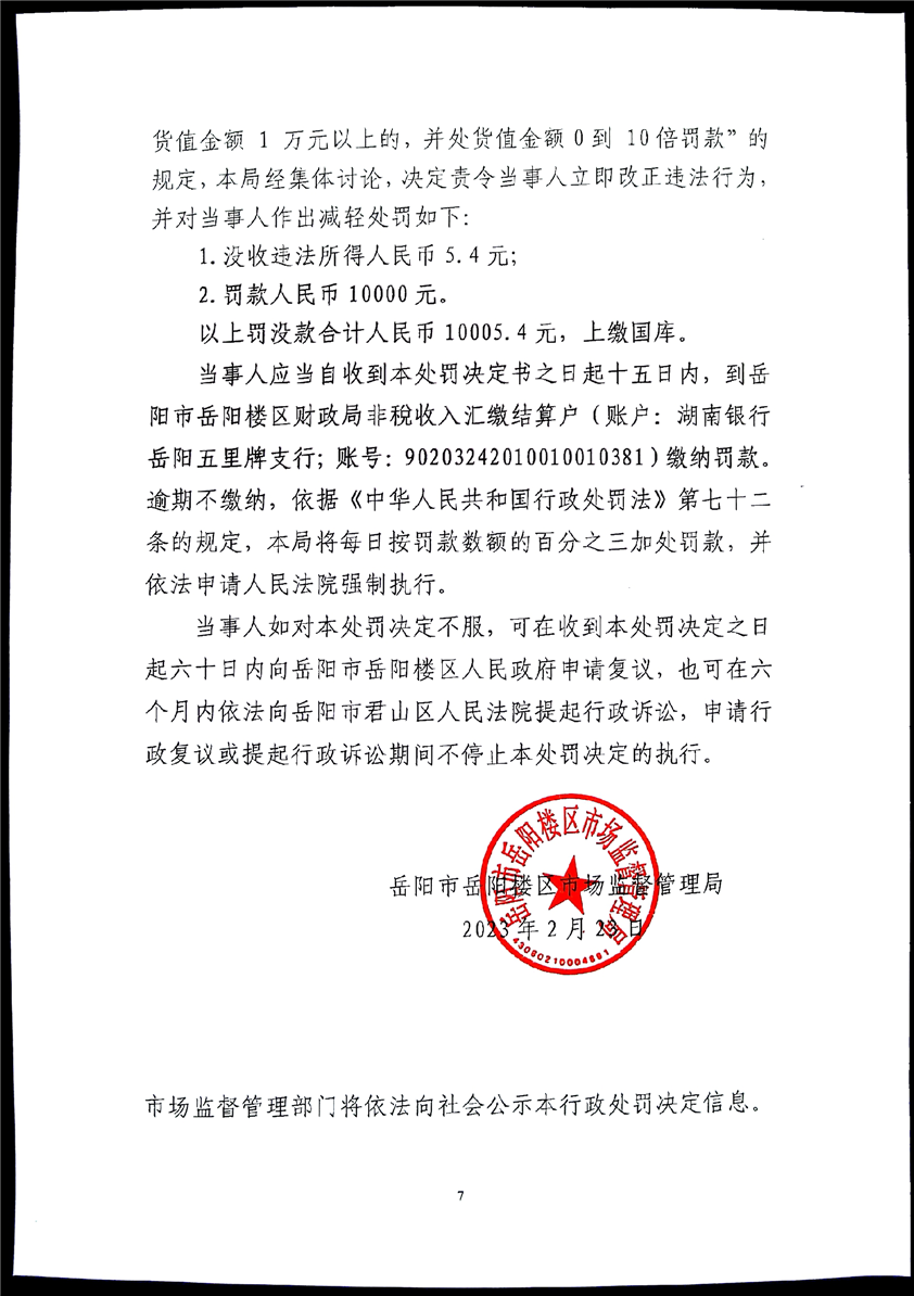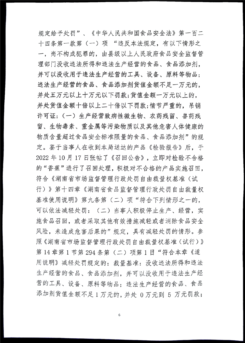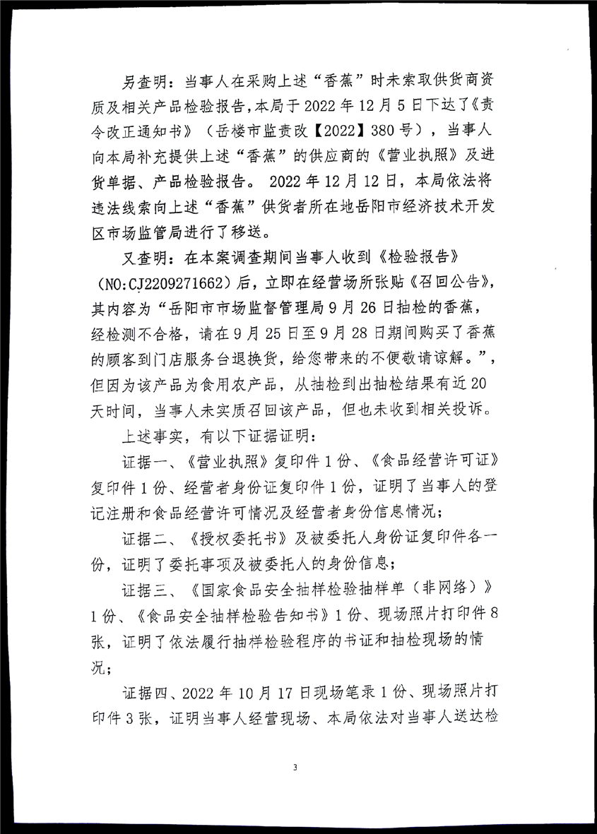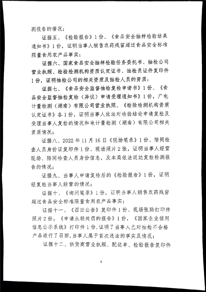 关于岳阳楼区林见超市经营农药残留含量超过食品安全标准限量的食用农产品的行政处罚决定