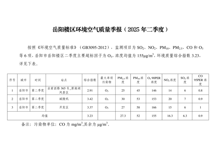 岳阳楼区环境空气质量季报(2025年二季度)