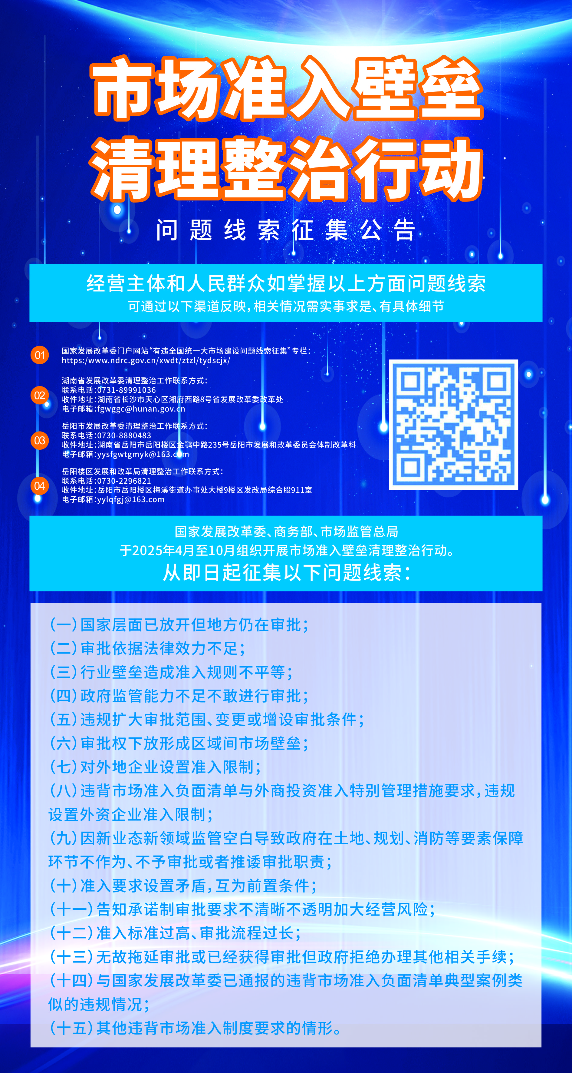 市场准入壁垒清理整治行动问题线索征集公告