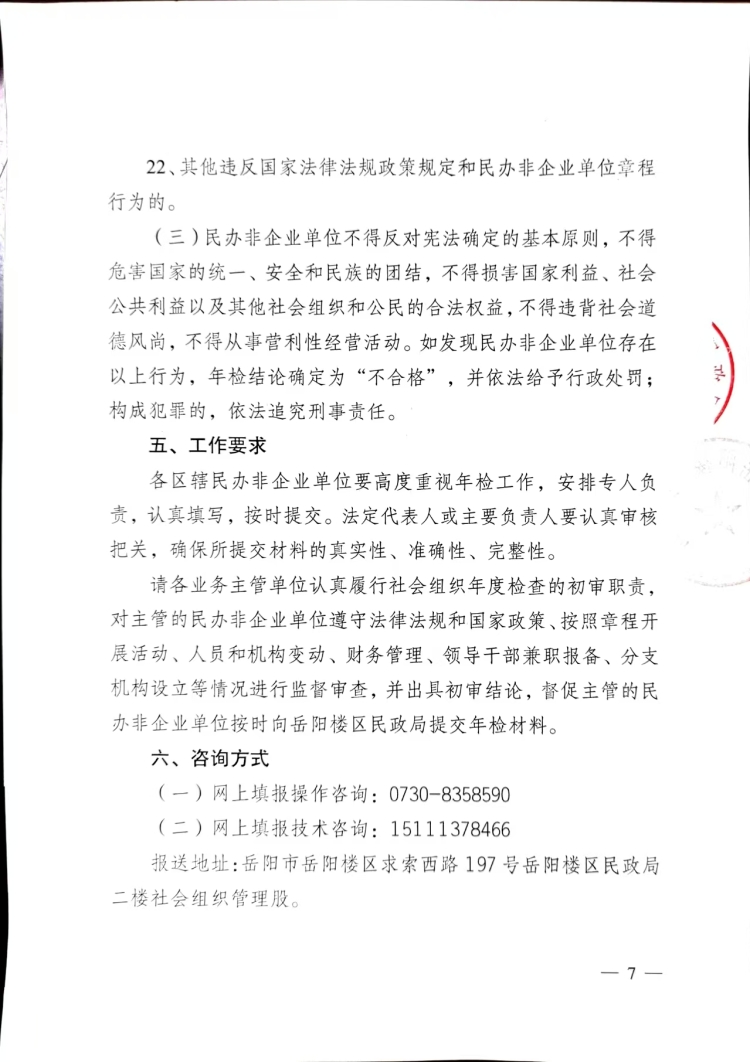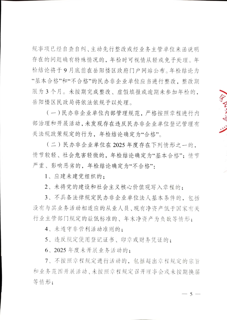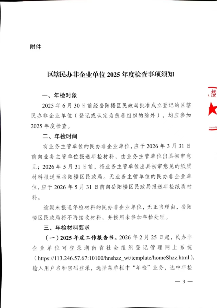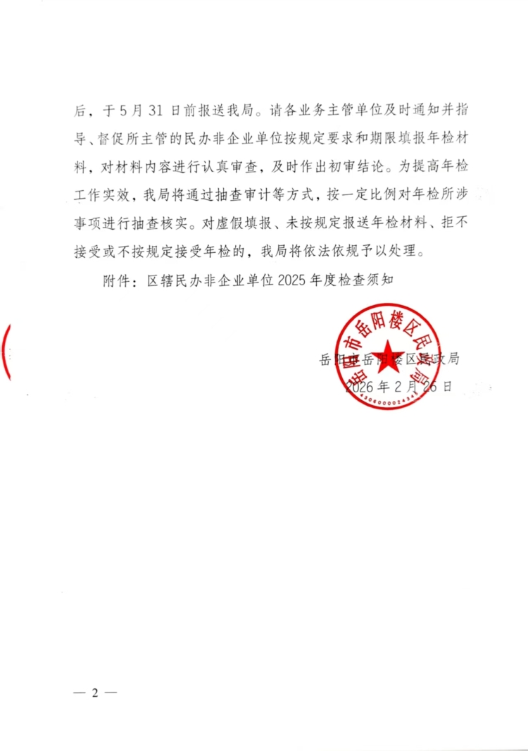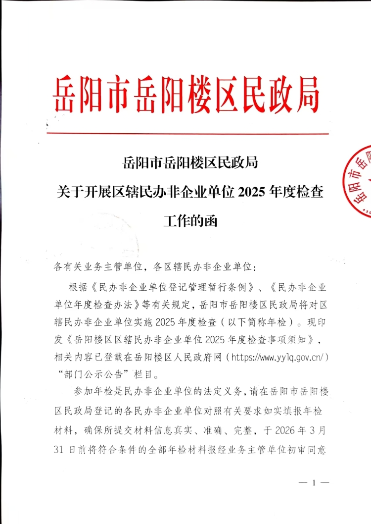 岳阳市岳阳楼区民政局关于开展区辖民办非企业单位2025年度检查工作的函