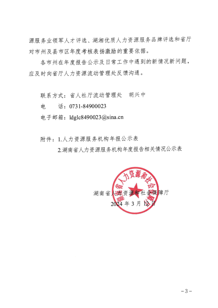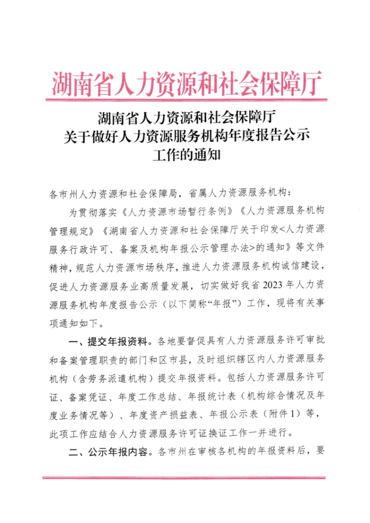 | 2023年湖南省人力资源服务机构年度报告相关情况公示表 | ||||||||||||