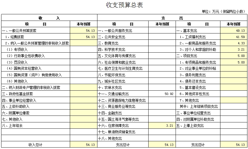 预算总收入54.13万元,其中:经费拨款54.13万元。