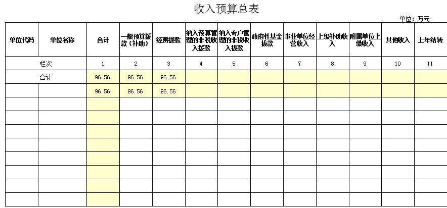 预算总收入96.56万元,其中:经费拨款96.56万元。