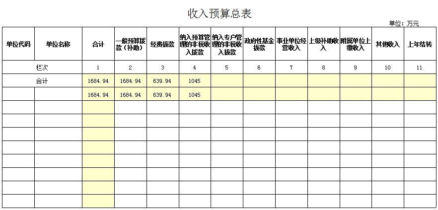 预算总收入1684.94万元,其中:经费拨款639.94万元;纳入预算管理的非税收入拨款1045万元。