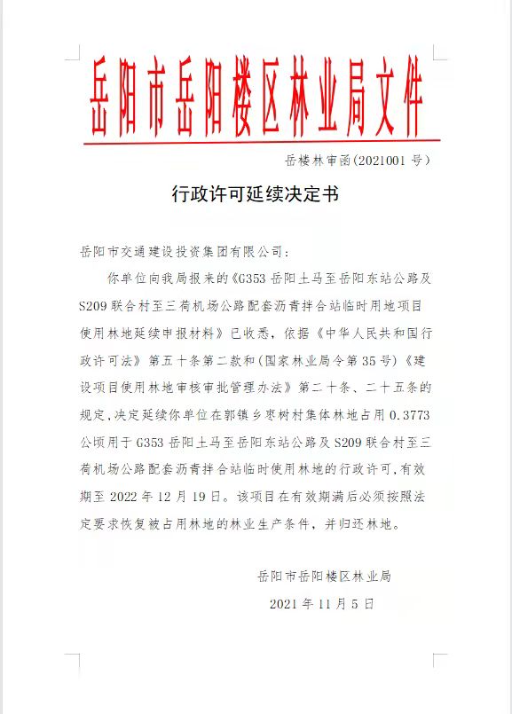 行政许可延续决定书