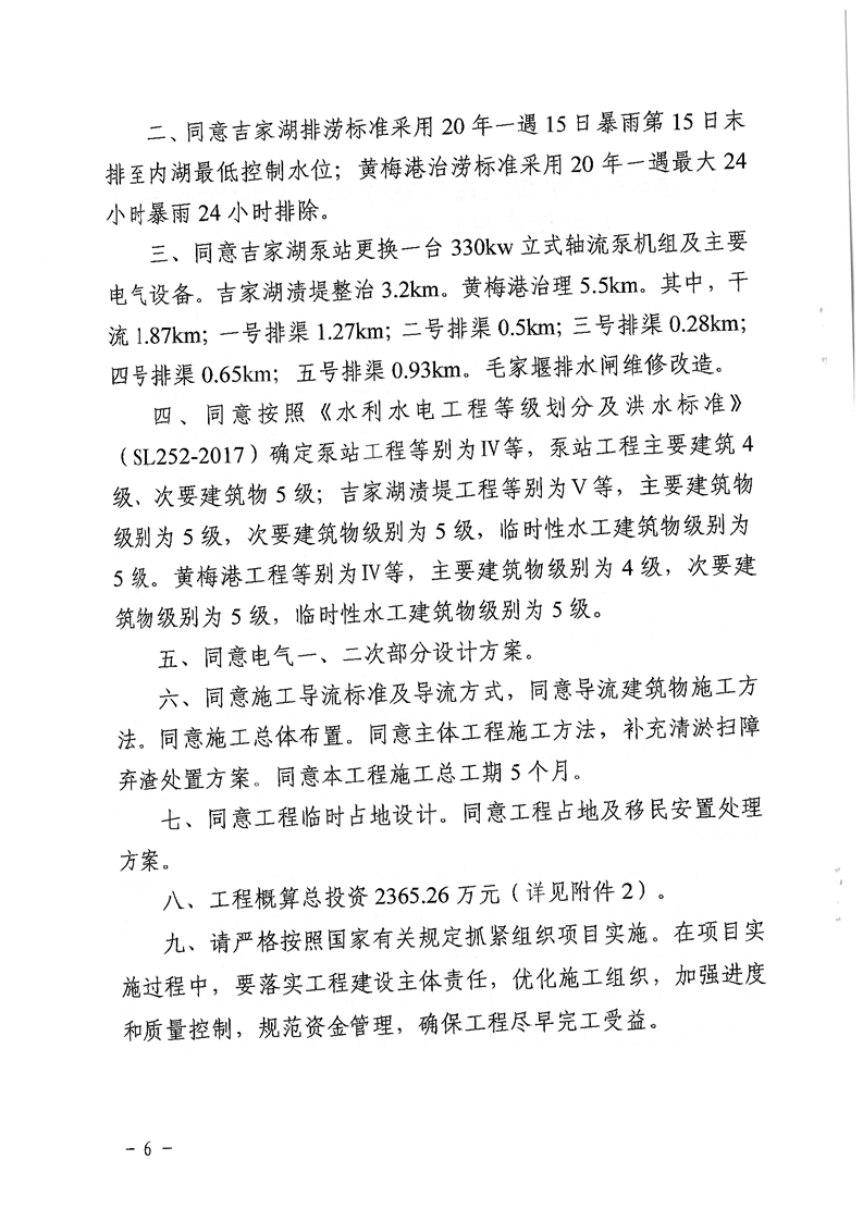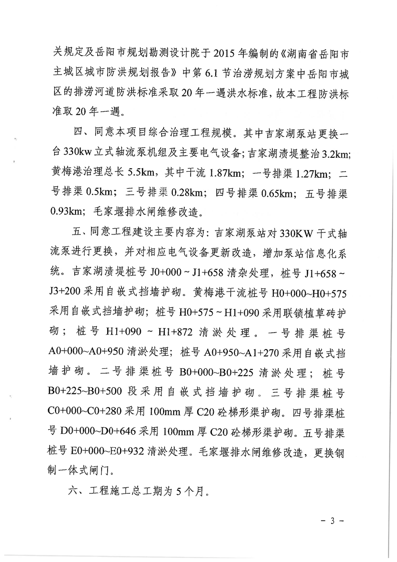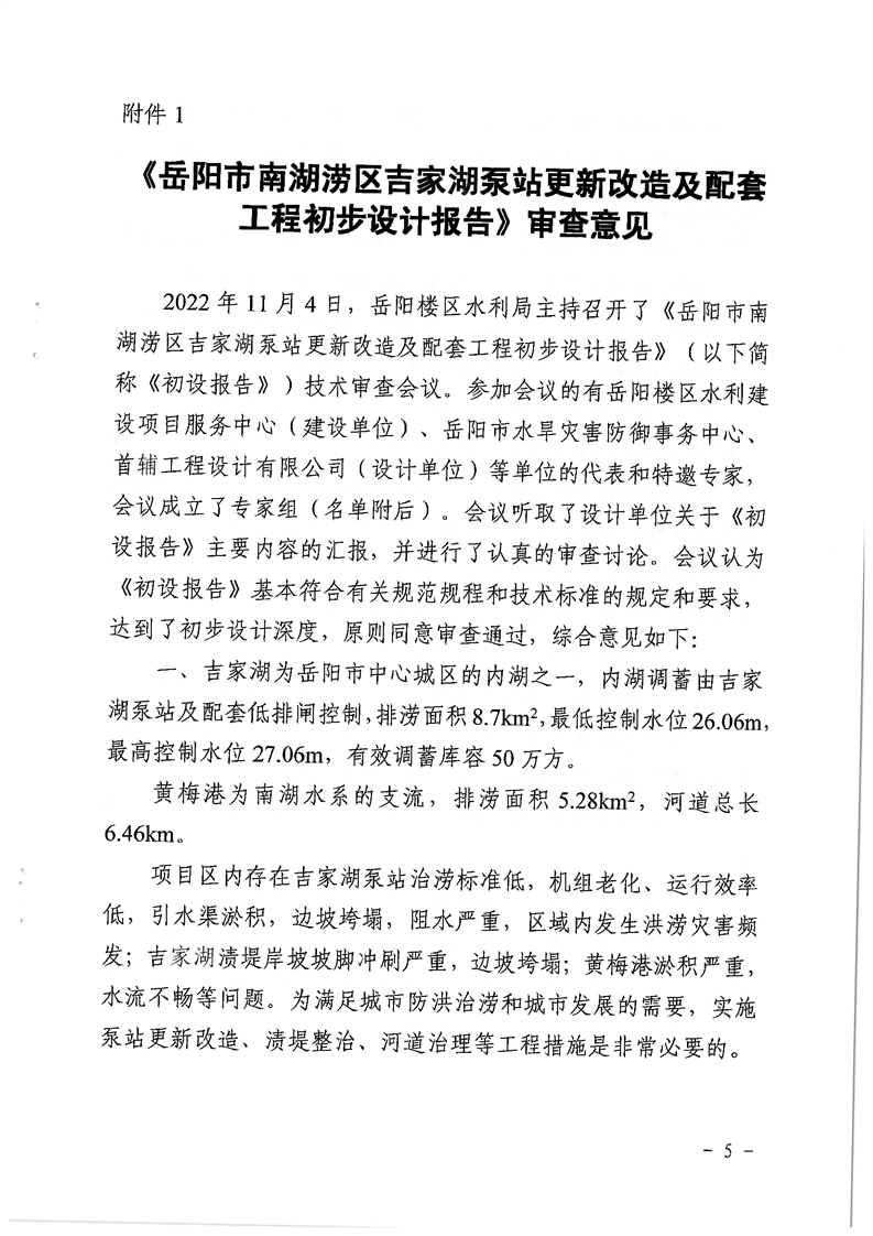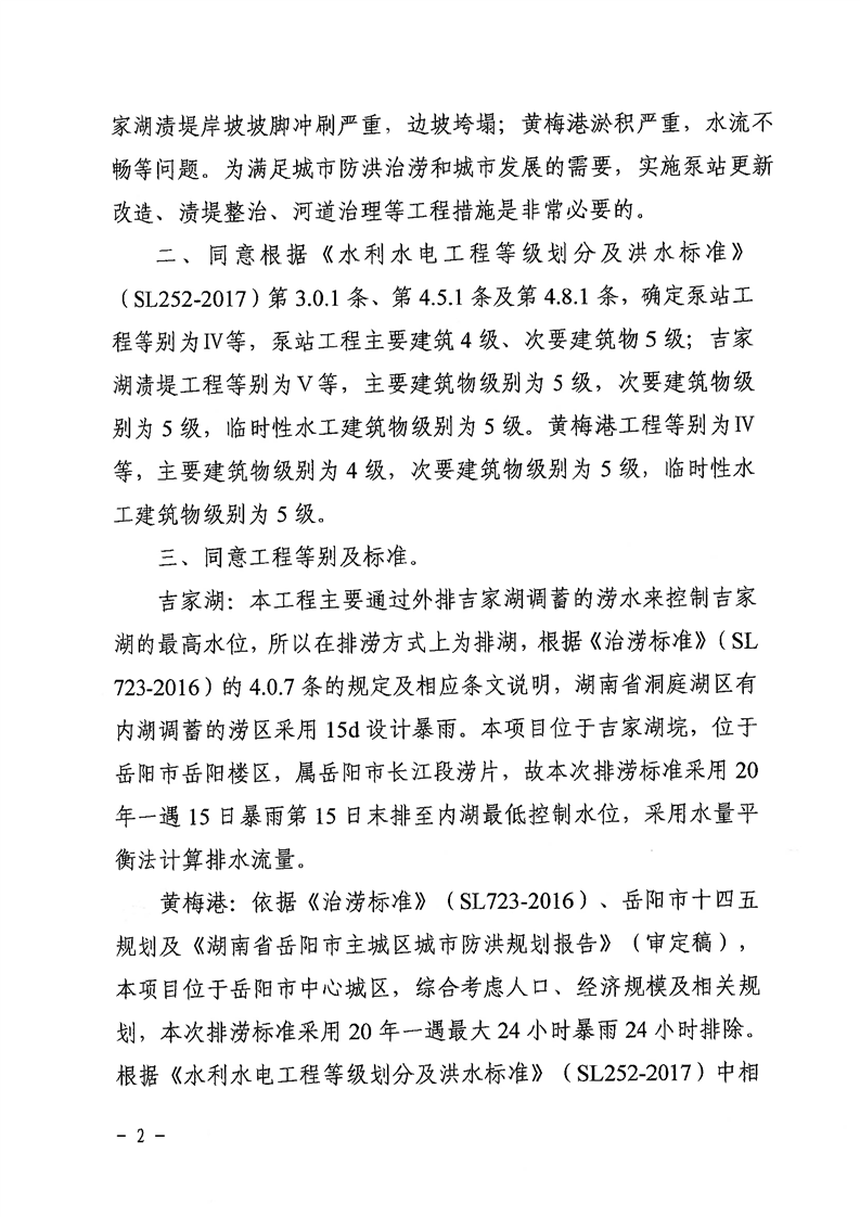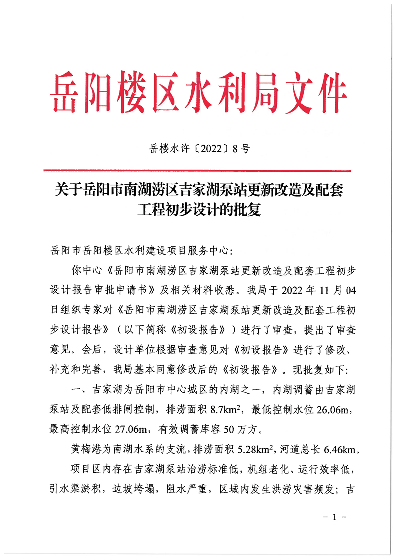 关于岳阳市南湖涝区吉家湖泵站更新改造及配套工程初步设计的批复