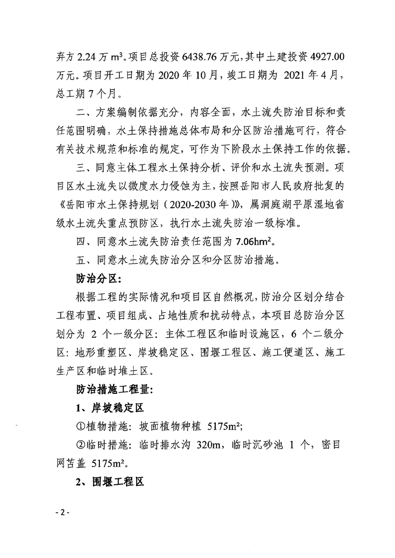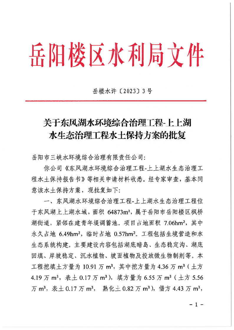 关于东风湖水环境综合治理工程-上上湖水生态治理工程水土保持方案的批复
