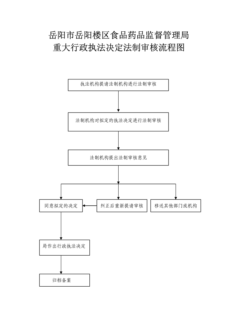 岳阳市岳阳楼区食品药品监督管理局重大行政执法决定法制审核流程图
