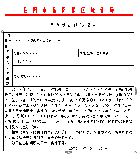 行 政 处 罚 结 案 报 告