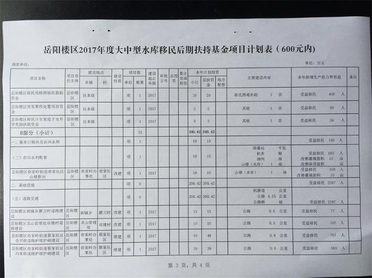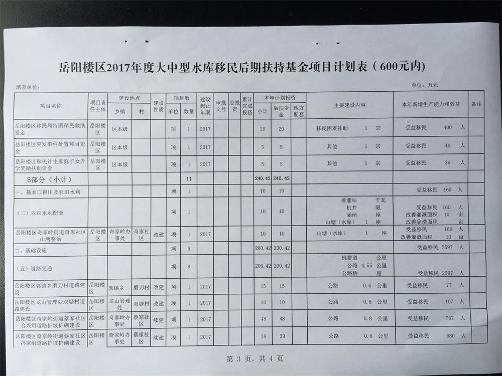 岳阳市移民开发局关于下达岳阳楼区2017年度大中型水库移民后期扶持基金计划的通知